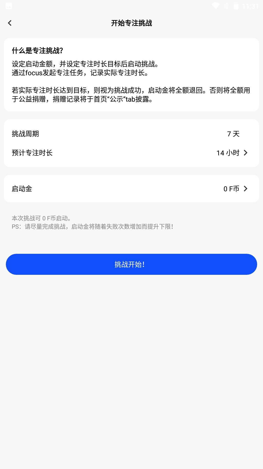 在这里,你可以以周为单位设定自己的专注时长,并在应用中记录你的专注时刻。每次成功完成挑战,都将是对你毅力和决心的证明。