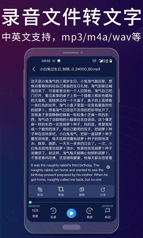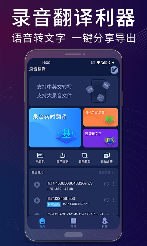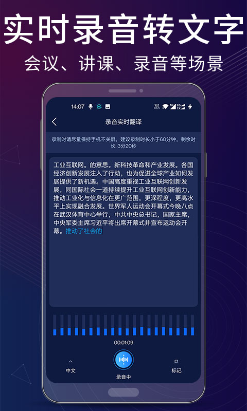 使用录音翻译助手,能够把您录制的语音实时转化成文字,这种转换方式既智能又便捷。