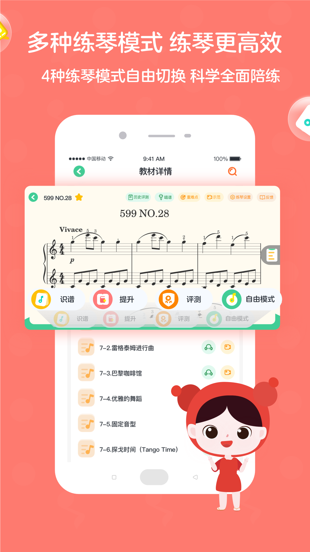 无论何时何地,它都能满足琴童24小时练琴的需求。在练琴过程中,它具有实时纠错功能,无论是错音还是错节奏,都能够精准地识别并纠正,让琴童可以有针对性地对弹错之处进行练习。