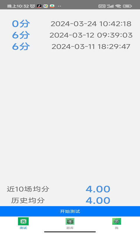 3. 使用者还可以回顾自己以往自测的成绩哦。