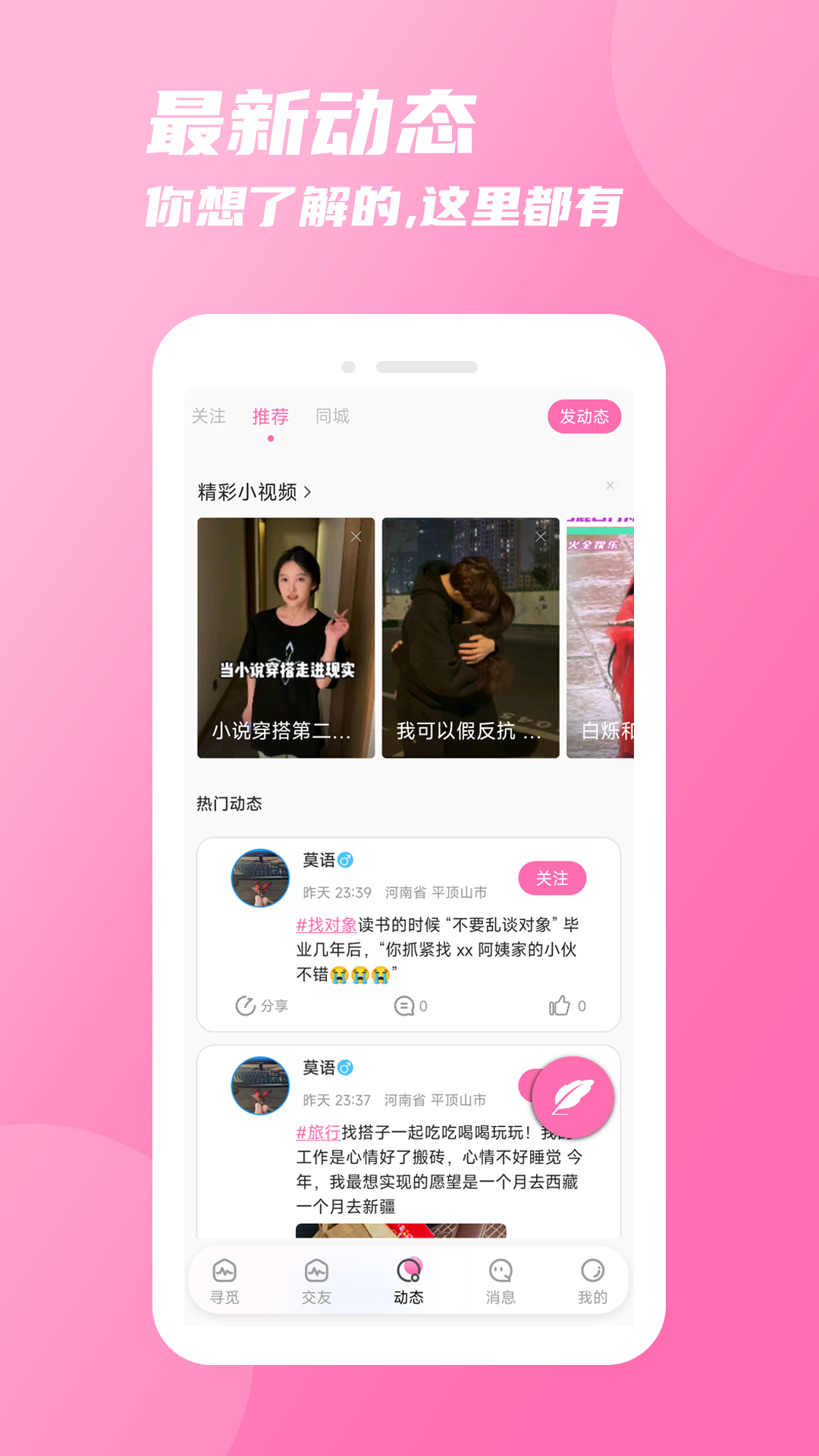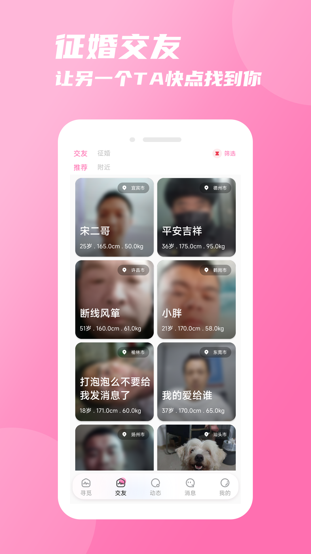 在友你APP里,您可以看到专门为您推荐的用户,从此找对象不再是一件令人头疼的事情。