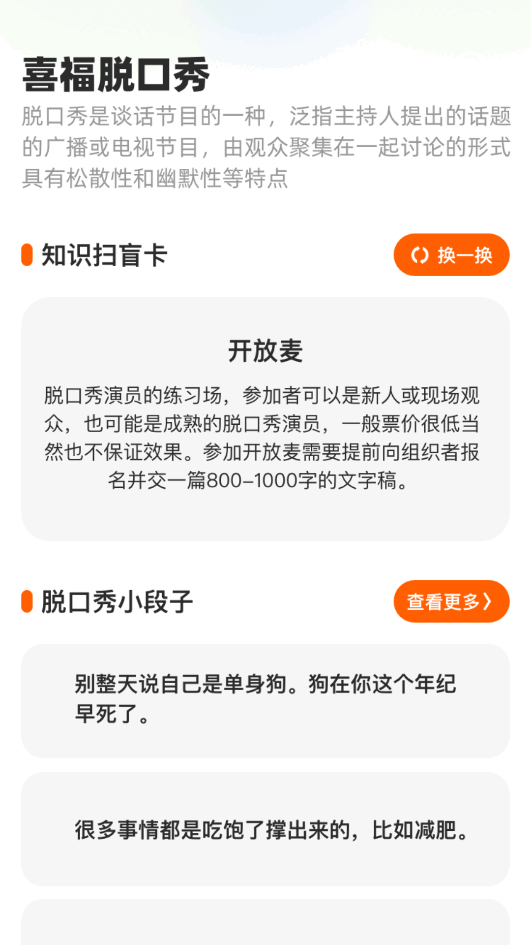 是一款实用的工具类软件,你可以在这里看海量脱口秀小段子,看知识扫盲,除此之外,你还能看有趣的歇后语和成语故事,喜欢的话,快来下载试试吧