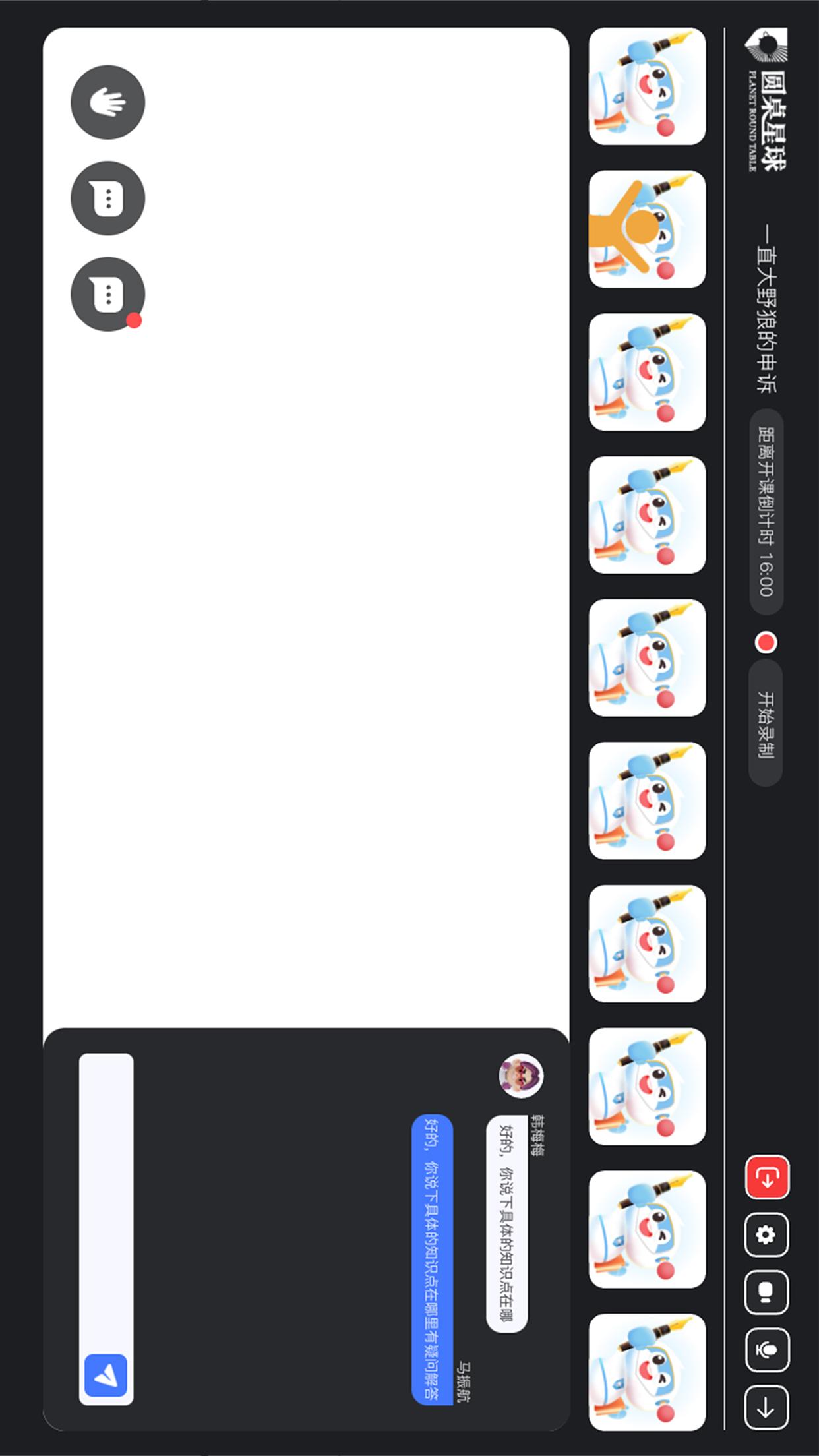 - 直播页面:借助直播画面,达成全班师生的面对面交流,更好地重现圆桌思辨的场景。