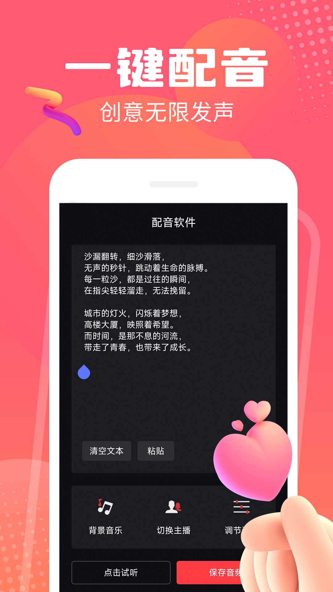 配音帝是一款文字转语音的音频制作软件,包括:智能主播配音、真人配音、录音,支持任意文本内容的便捷配音软件。