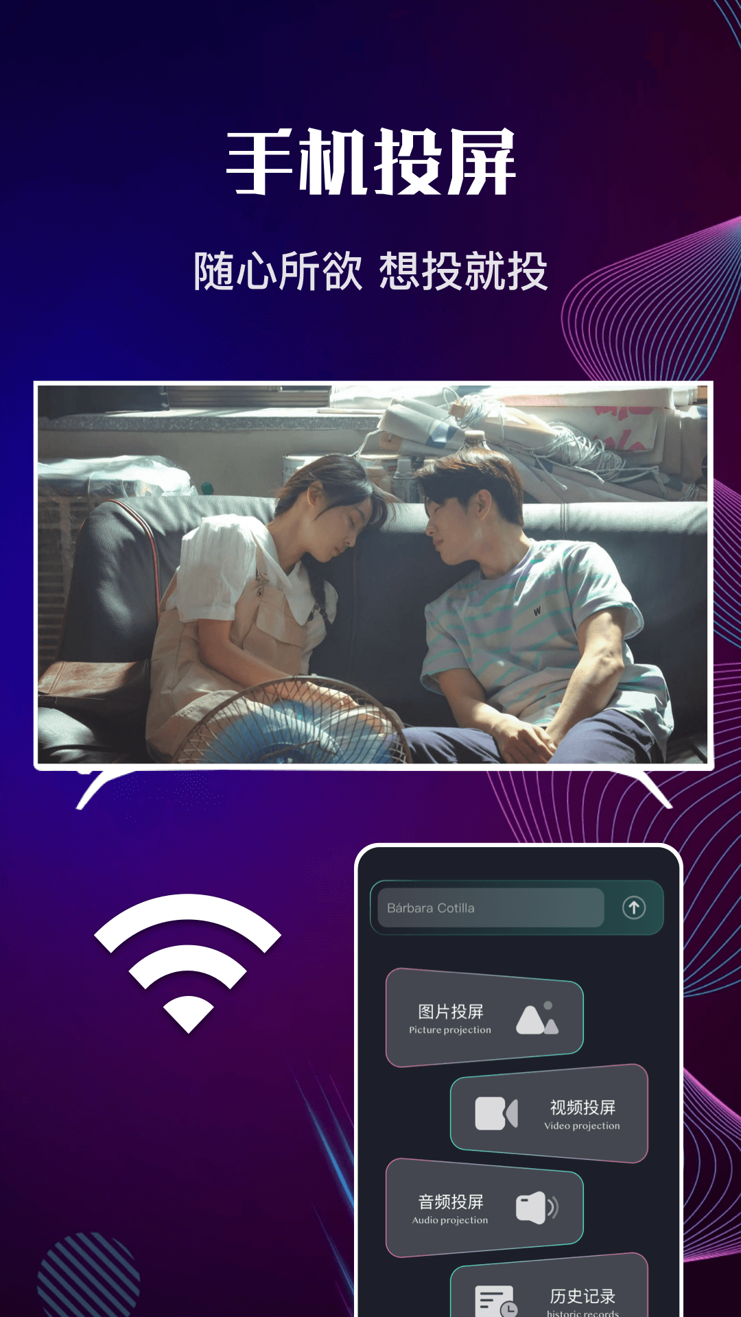 它还具备便捷的投屏功能,只需在手机上轻轻一点就能投屏,开启多屏互动模式,在大屏上畅享播放乐趣,让精彩加倍。