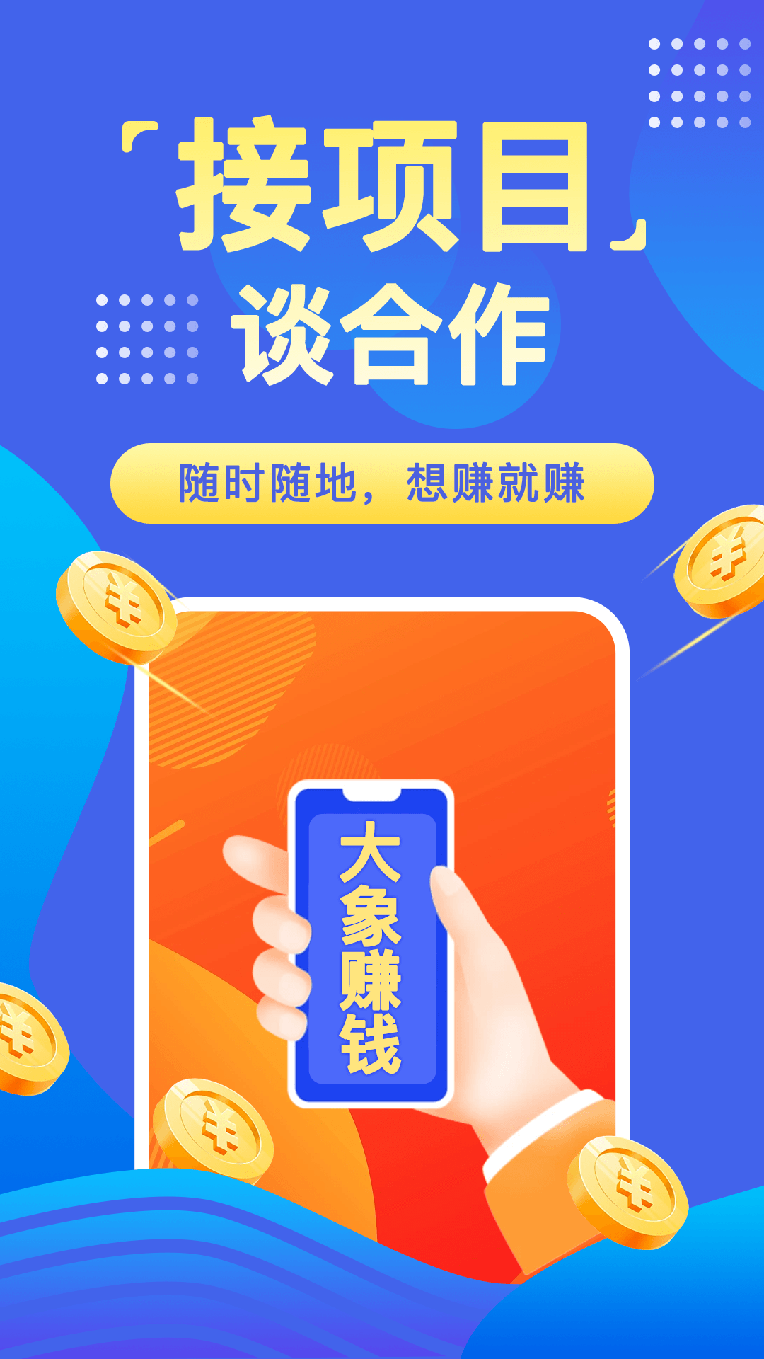 接项目,谈合作:用户在大象赚钱免费发布合作,免费对接资源, 异业合作。