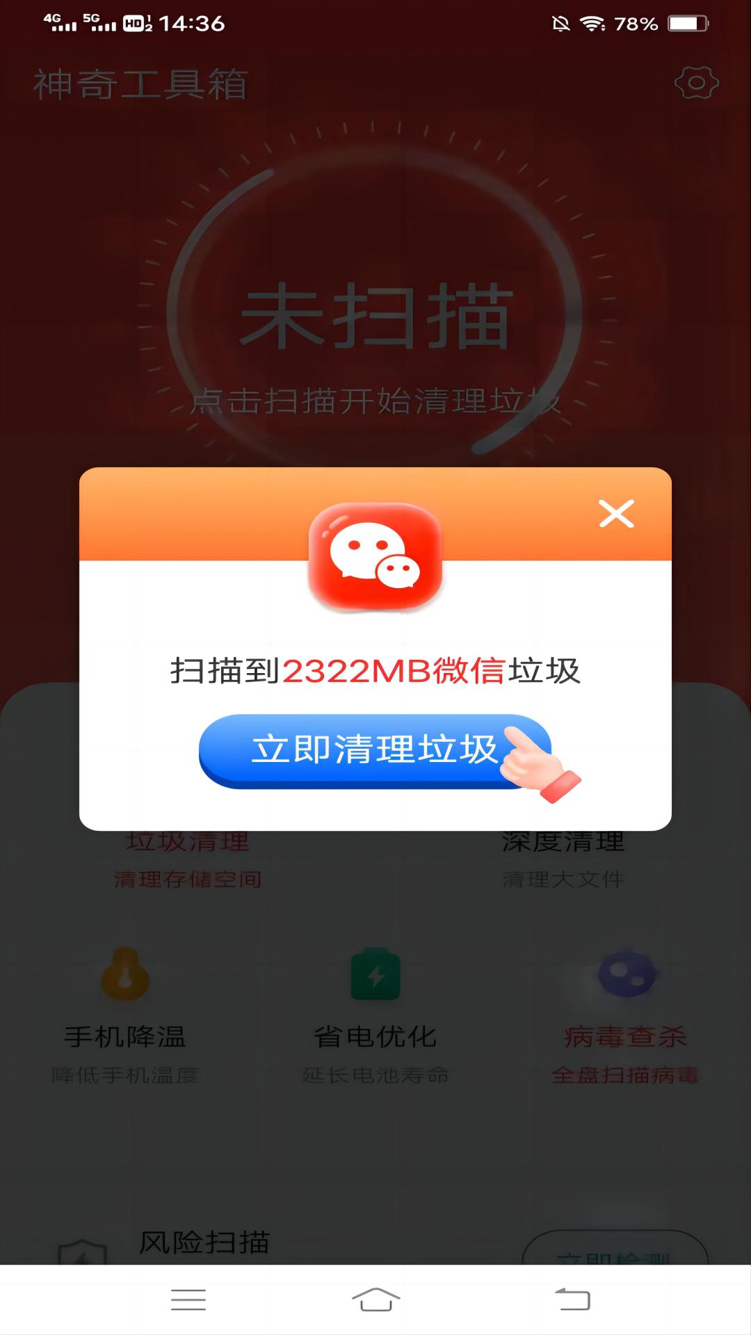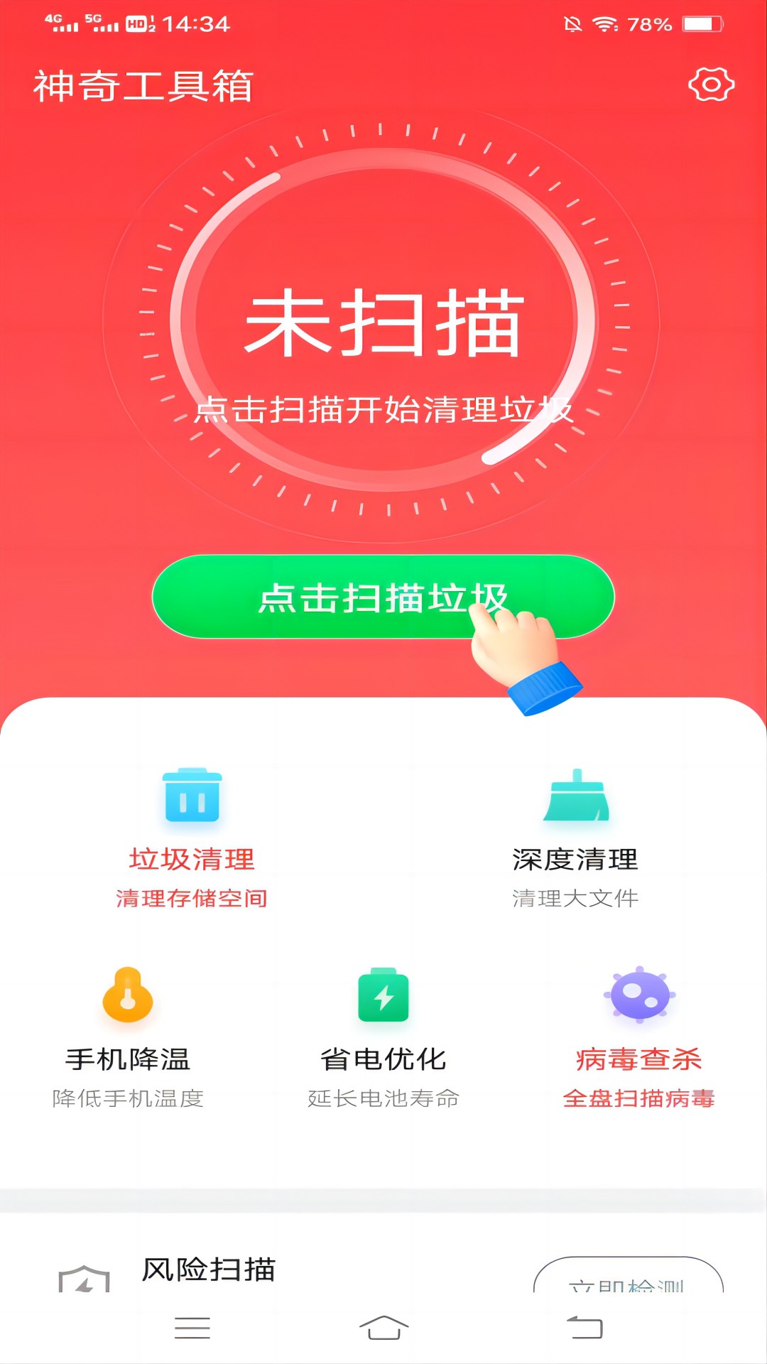 神奇工具箱不仅可以为用户提供手机清理服务,包括清理垃圾、手机降温、省电优化和病毒查杀,以便更好地释放手机空间,提高手机运行速度和保护手机安全的软件。