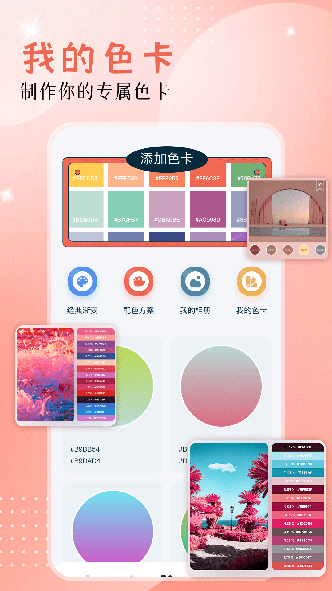 49图库这款APP是专门为设计师、艺术家、时尚爱好者以及所有对色彩搭配感兴趣的人群打造的。它借助智能算法与丰富的色彩库,助力用户探索并创造出令人惊叹的色彩组合,从而增强设计作品的视觉效果。