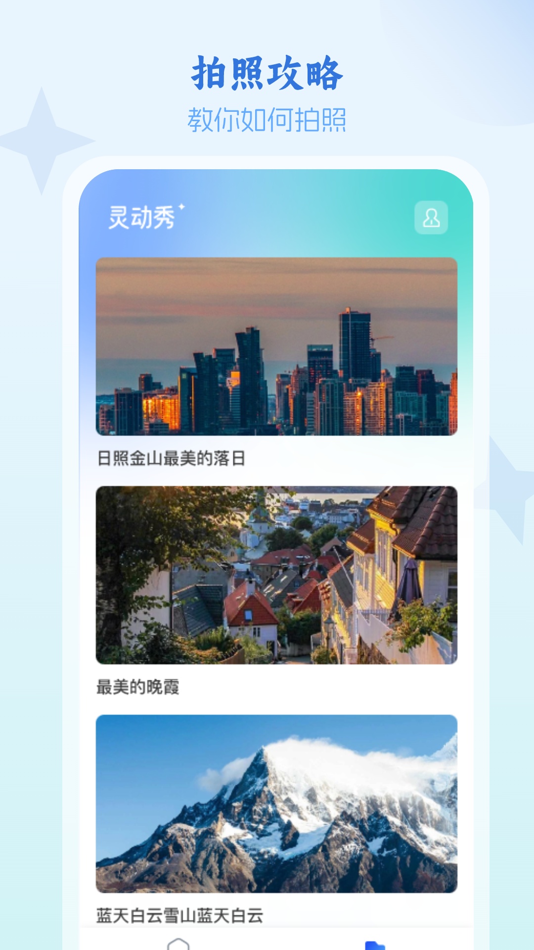 灵动秀,这是一款专注于探寻更多生活灵感的软件。它巧妙地将分享拍摄技巧与记录生活中的美好瞬间融合为一体。在灵动秀中,你能够获取到大量丰富的摄影教程,这些教程能助力你提升拍摄技能。同时,它也是一个记录和分享生活的优质平台,你可以把生活里每一个动人心弦的时刻留存下来,并分享出去,与大家一同去挖掘、创造生活中无限的可能性。