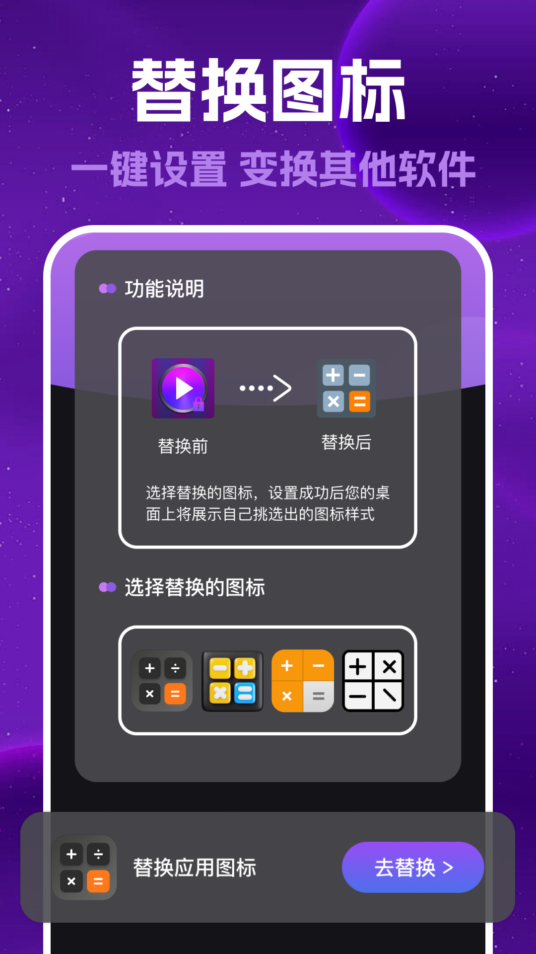 3、更换图标:为了进一步增强应用的隐蔽性,我们允许用户自定义应用图标。只需简单几步,即可将“私密藏播放器”伪装成其他应用,让您的隐私更加安全。