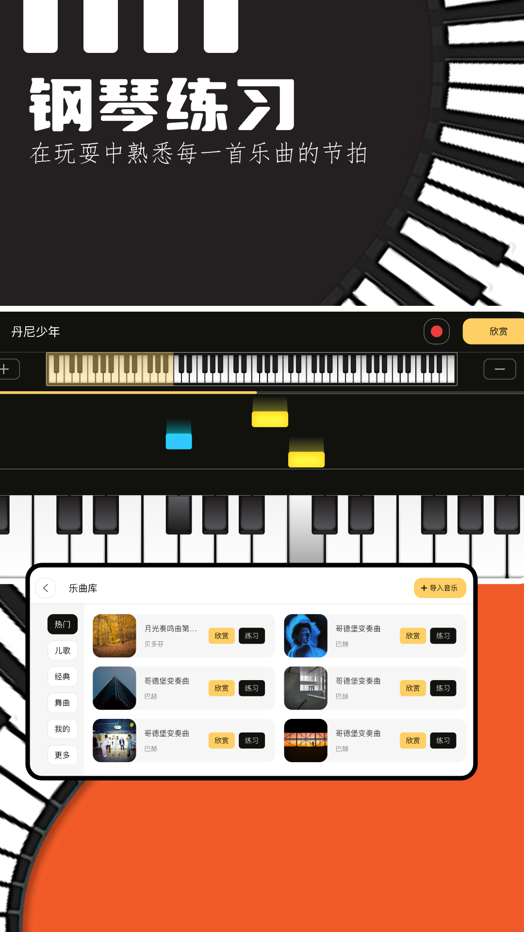 曲谱库中包含各种风格以及不同难度级别的曲目,能够满足用户多样化的需求。