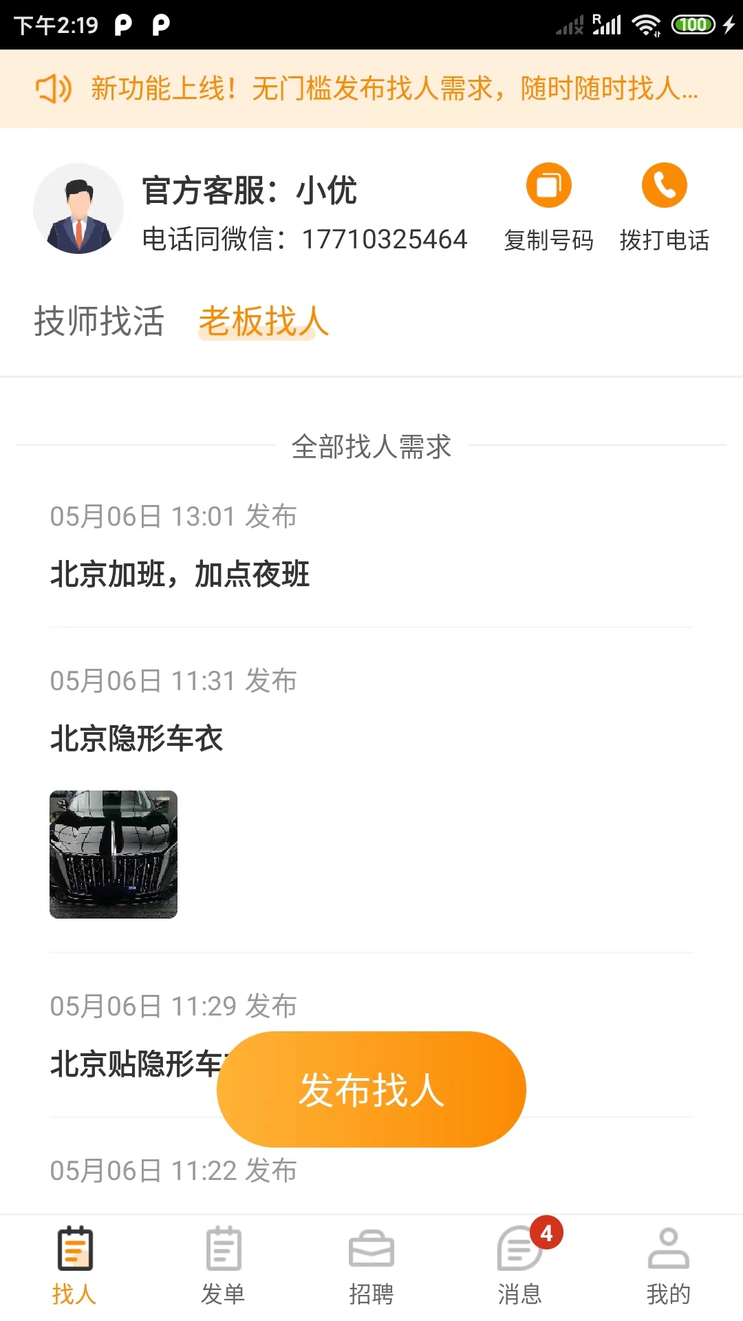 您在找长期用工或者临时用工吗?那就来优活商家版吧!这里有万名经过认证的技师供您挑选。不管您有任何维修需求,只要您下单,技师就能在2小时内上门服务。无论是复杂机修、钣金、喷漆,还是美容装饰等各类维修工作,都能为您搞定。