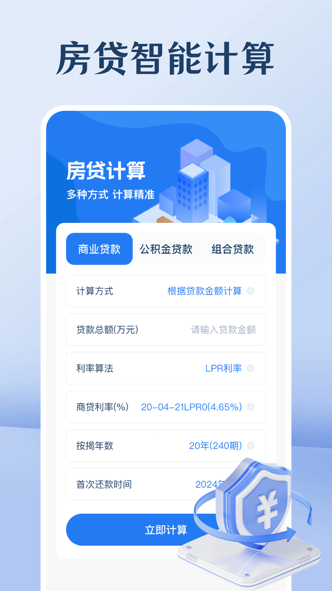它支持用户输入贷款总额、贷款期限、利率等信息,进而进行房贷还款计划的计算,还提供等额本息、等额本金等多种还款方式让用户选择。