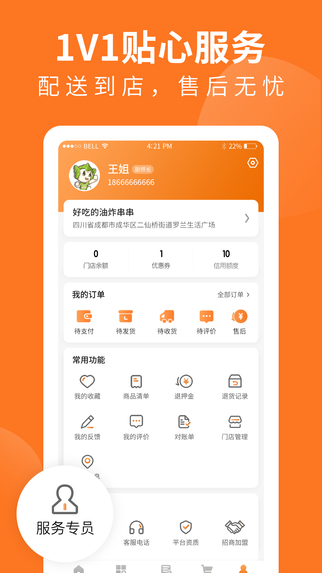 有一对一专属服务专员,能及时送货,补货轻松便捷,退换货更让您省心。