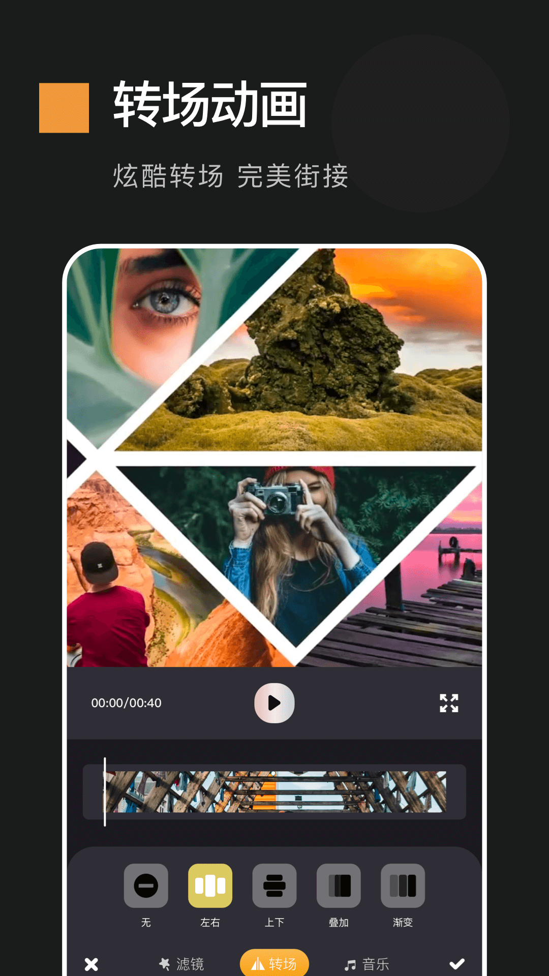 - 具有震撼的转场特效,能让您的MV更加酷炫夺目。