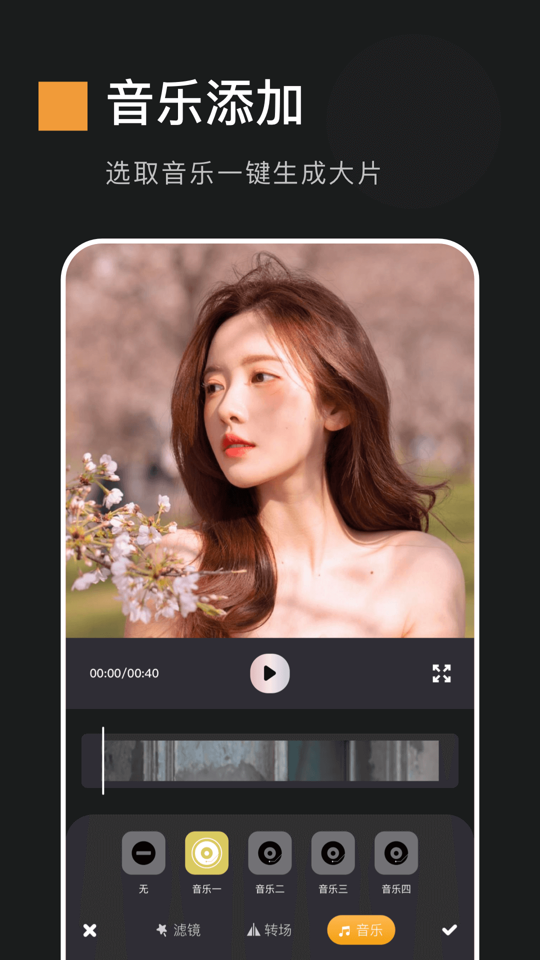 - 有多款充满质感的音乐可供选择,您能挑选出契合场景的音乐。