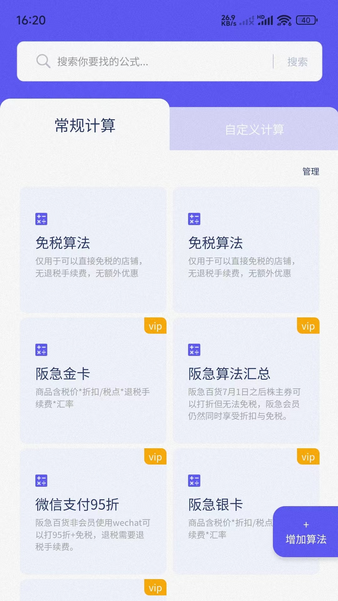 即时算法“APP,专为出国旅游打造。一键算价,含免税、汇率,税点,退税手续费等复杂参数,精准便捷。自定义算法,满足多样需求。商品货号查询比价,购物更明智。互动广场分享心得,社区互动乐无穷。多等级会员制,尊享更多特权,让您的海外购物之旅更加省心省力!