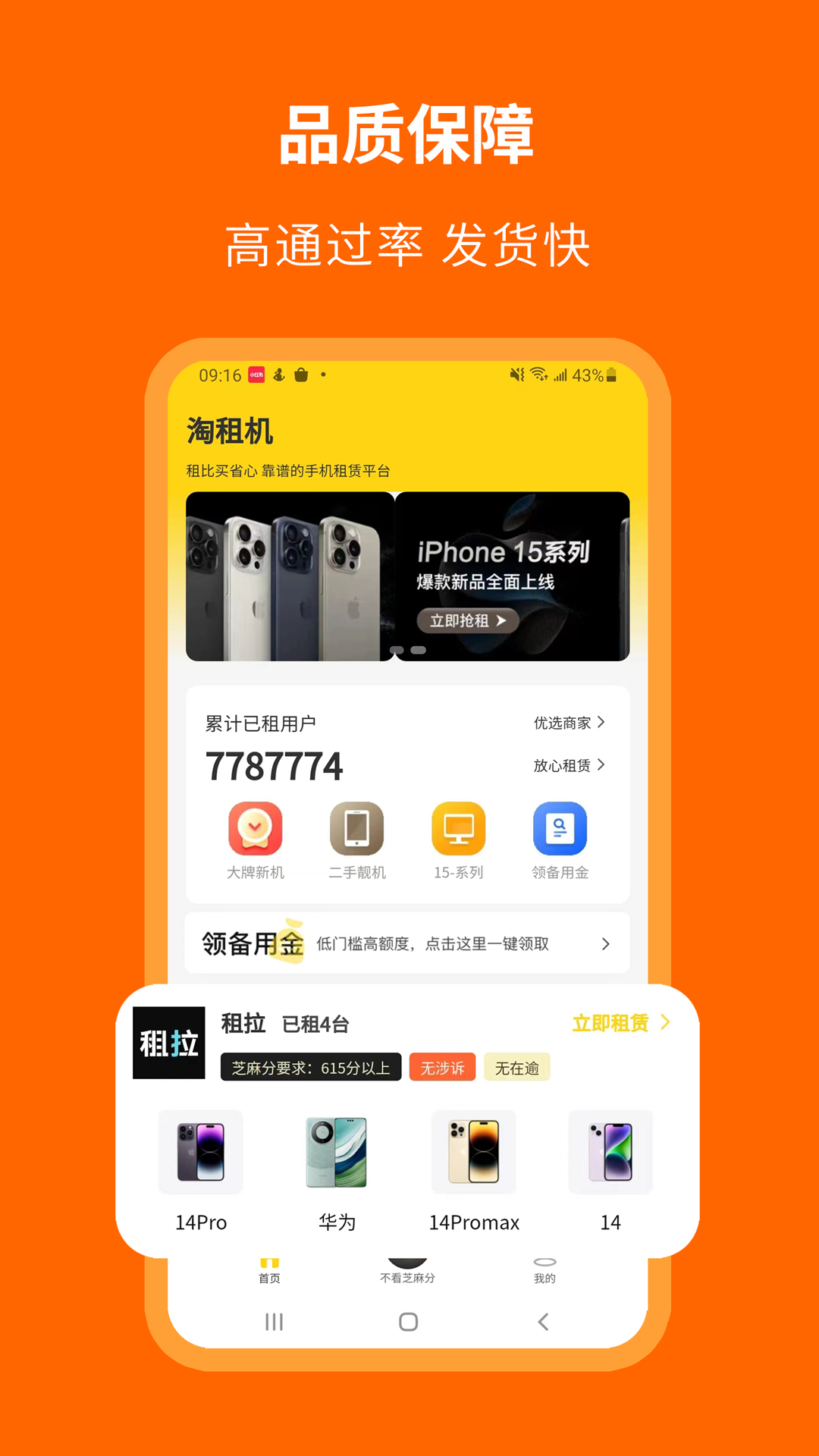 【淘租机】如果您想租手机、租电脑、租平板或者租相机的话,那就一定要来淘租机APP。这里提供的全是全新国行商品,品类十分齐全,那些热门商品货源相当充足,而且发货速度超快哦。