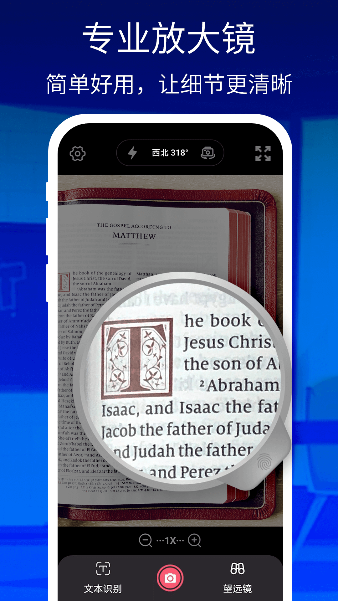 放大镜APP,让手机成为传统放大镜的完美替代品。只需轻松一键开启,就能畅享其便捷实用的功能。它的界面清晰明了,操作简单易懂。您是否常常忧虑看不清微小的文字?又或是害怕错过生活中的细微之处呢?这款多功能放大镜APP可以为您排忧解难。它可是患有近视眼、老花眼人群的得力生活助手哦。