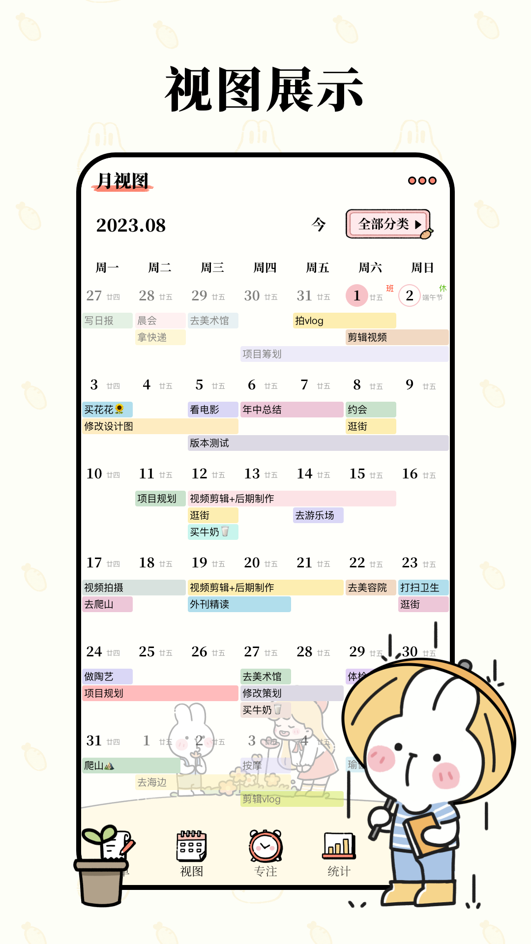 【月视图】提供美观可爱的每月清单视图,方便查看每月任务。