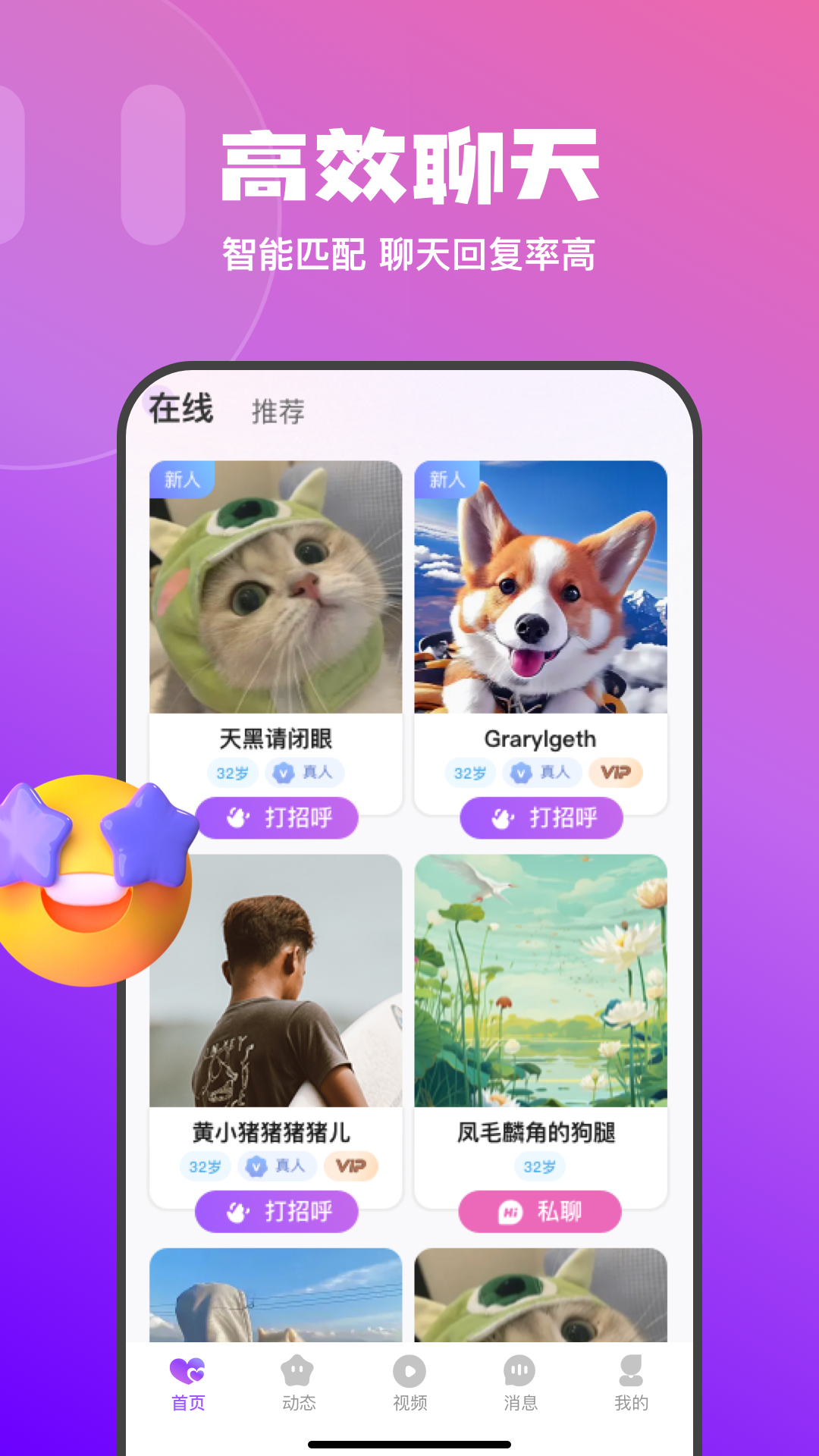 [高效聊天]:通过智能匹配,不用担心无人陪伴。