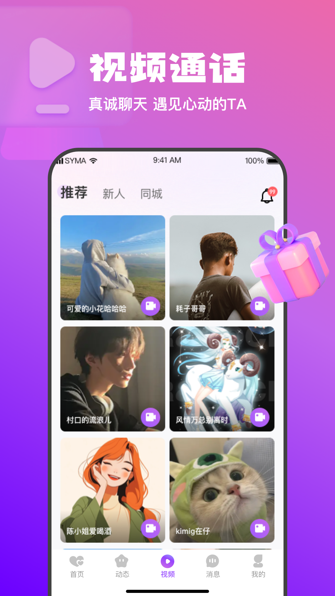 [视频通话]:真诚地聊天,邂逅令您心动的那个人。