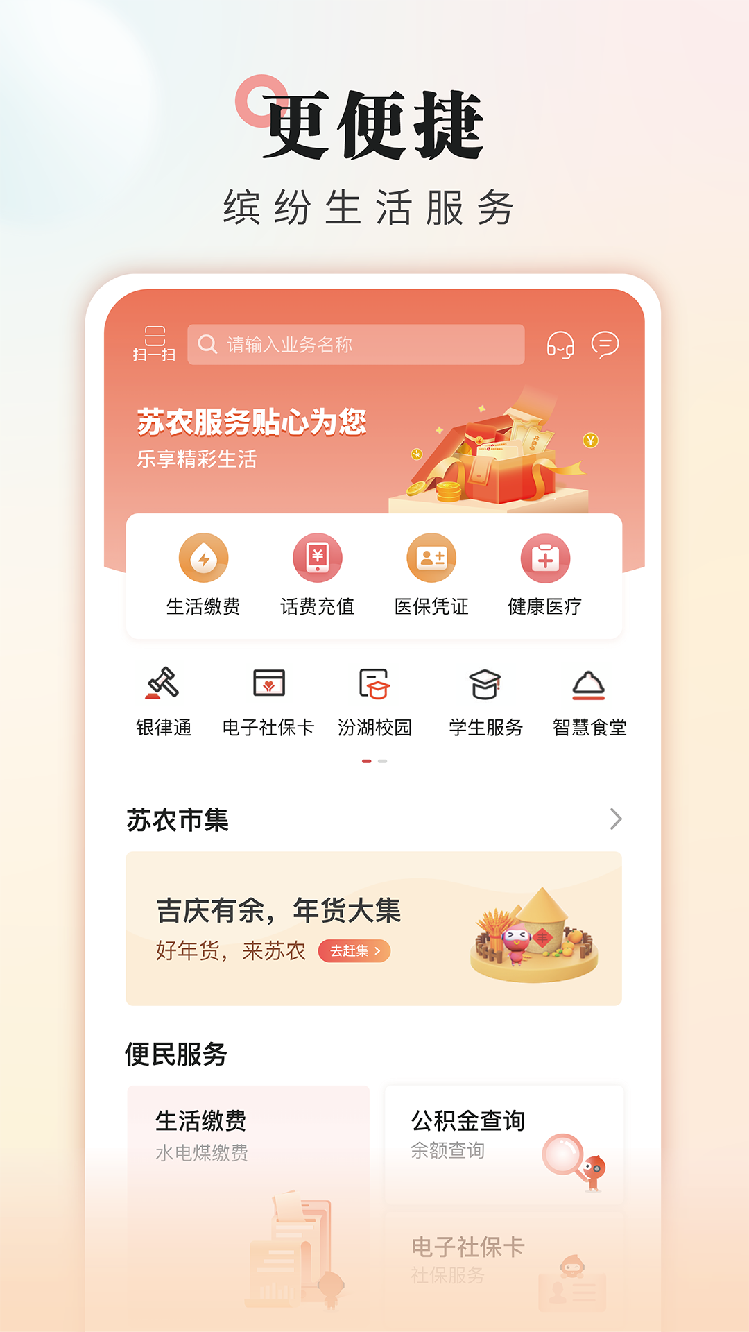 苏州吴江农村商业银行推出的iPhone客户端移动金融生活服务平台,能让您无论何时、身处何地,只要随心而动,就既能享受移动金融服务,又能体验便捷的本地化生活服务。