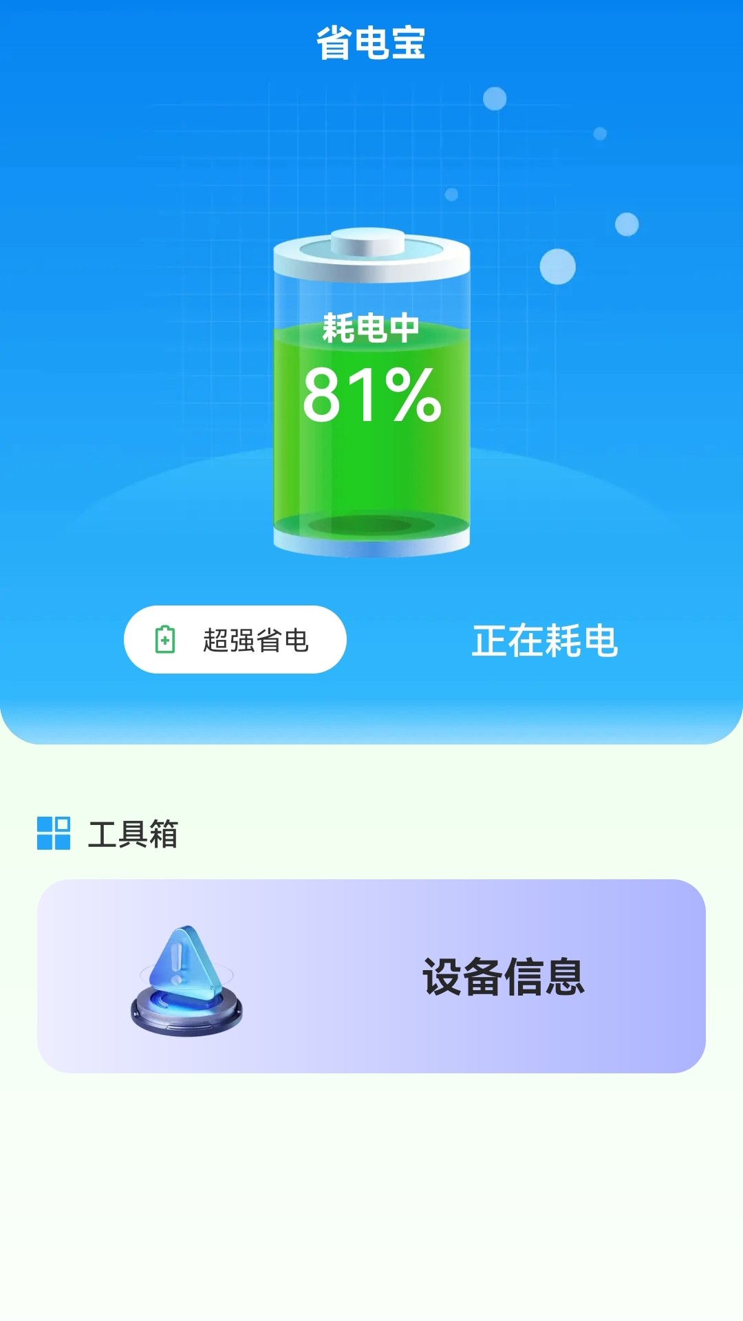 省电宝是一款实用便捷的电池健康省电管理软件,可跟踪电量变化,并提供查询手机信息、一键省电、耗电优化,等多项功能维护电池健康,延长电池寿命。