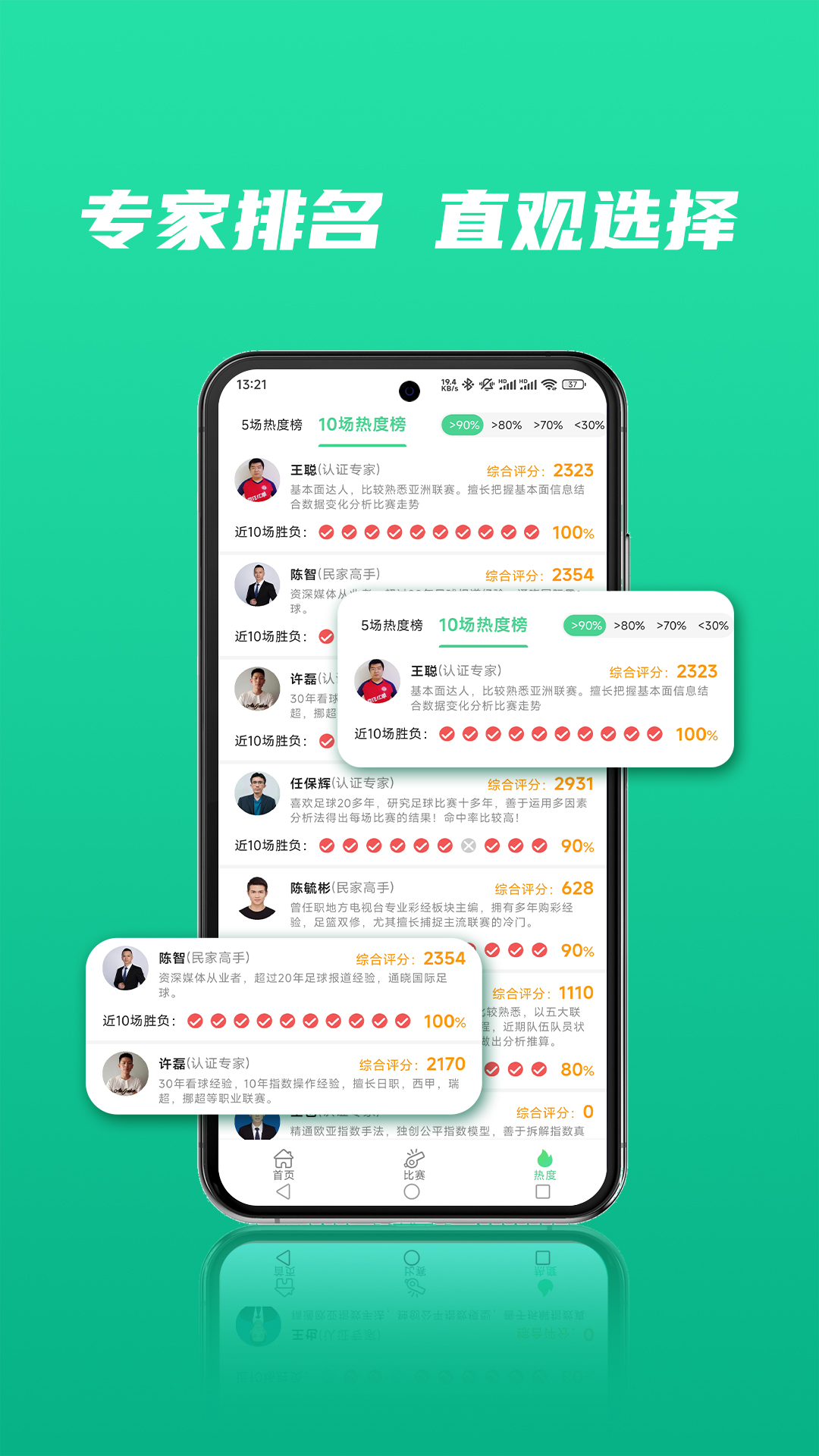 【专家排名】 平台提供专家综合排名功能,将各位专家的分析质量和准确度进行综合评定,用户可以更直观的选择专家查看分析方案。