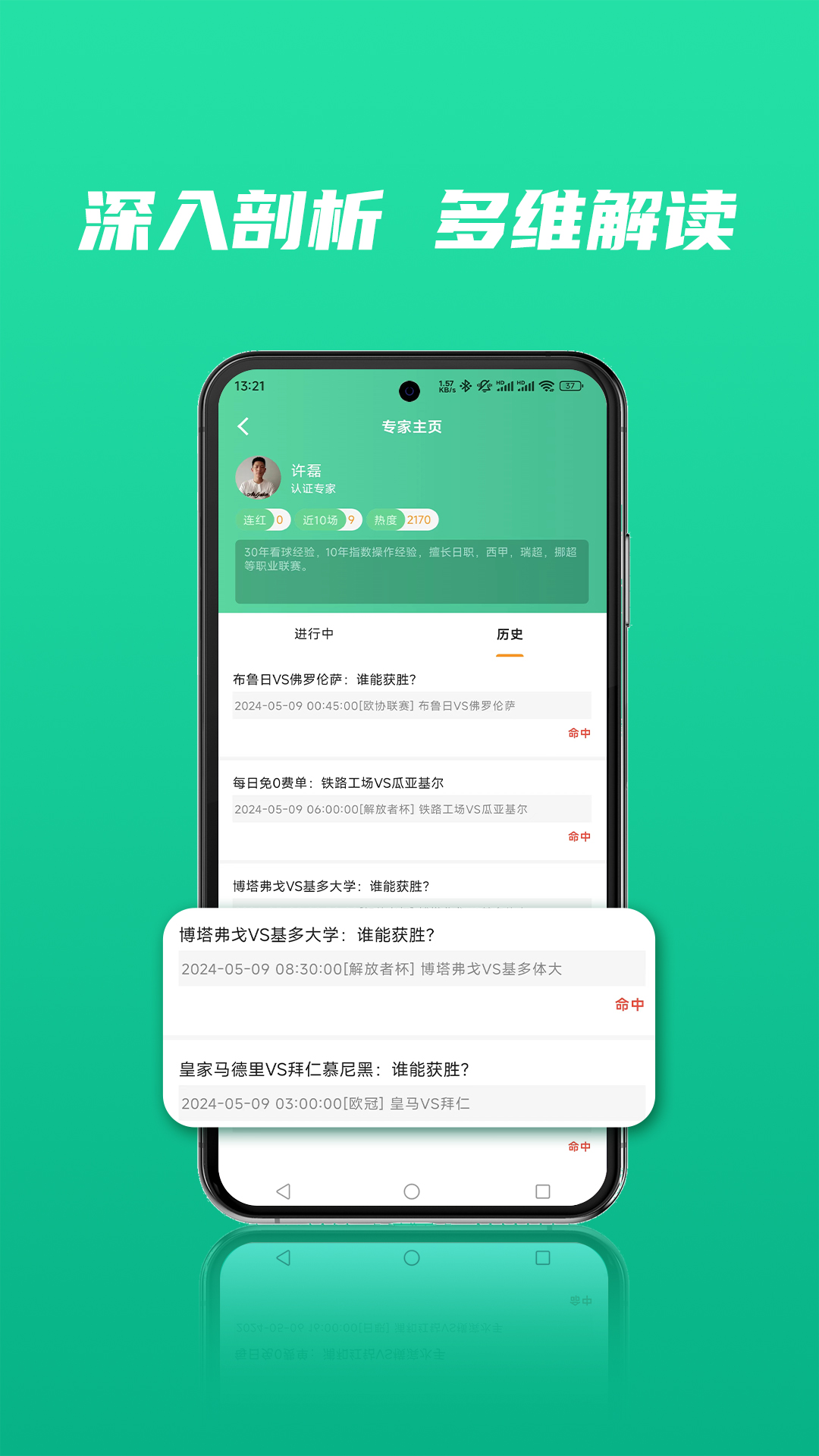 【赛事分析】 平台为用户提供来自各个领域的专业足球专家的分析文章和观点解读,提供权威、精准的赛事分析。