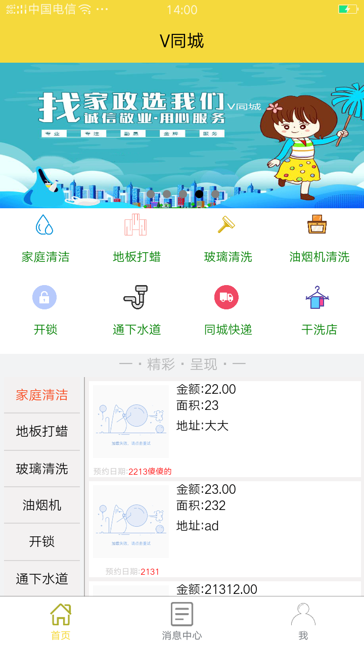 本应用提供同城编辑服务,服务类型涵盖家庭清洁、地板打蜡、油烟机清洗、开锁、通下水道、同城快递以及干洗店等多种服务。本应用重点是为人们解决日常生活中的不时之需,具备便捷、安全、高效的使用特性。