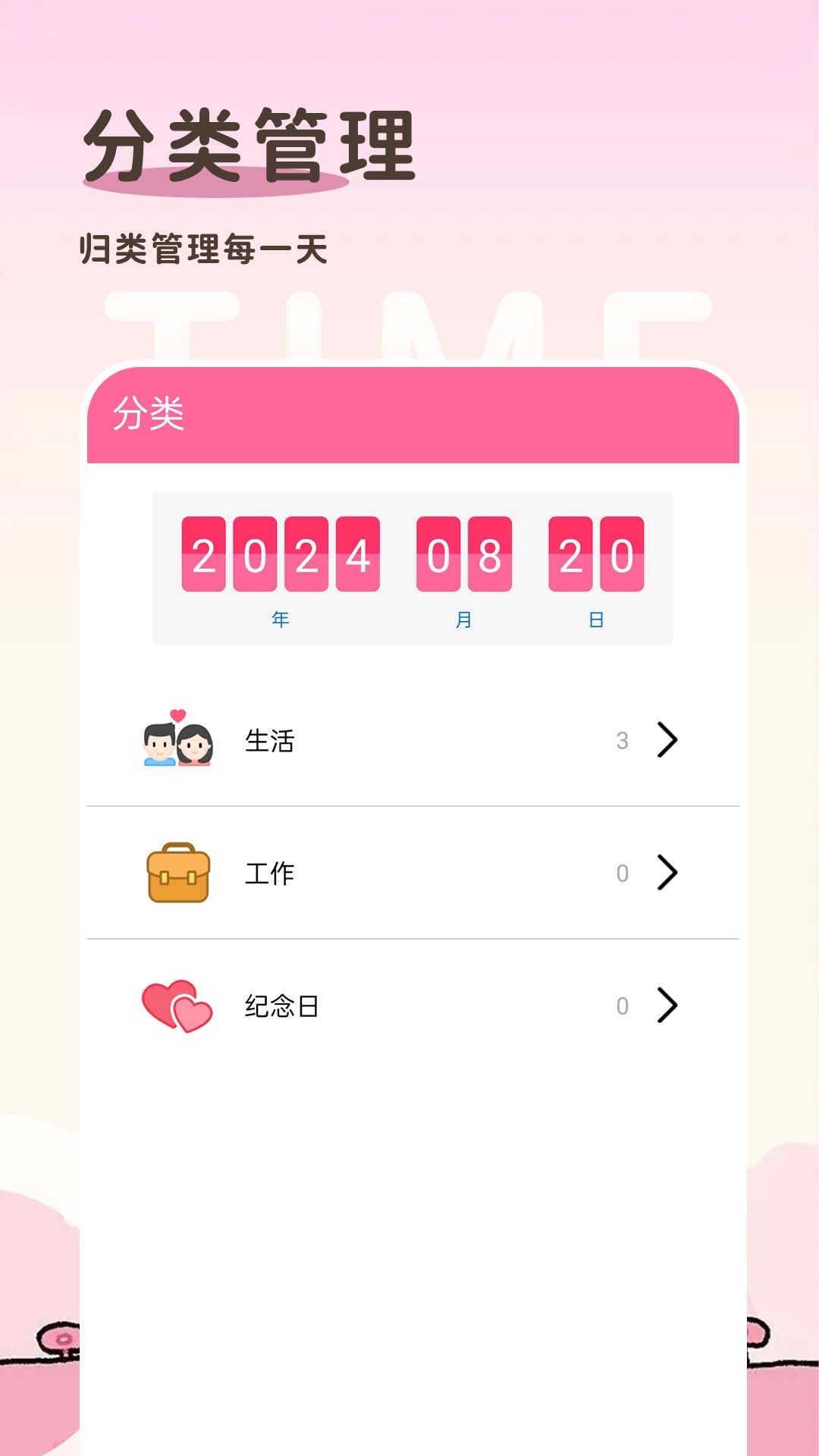 1、自定分类:如工作、生活、节日、纪念日等