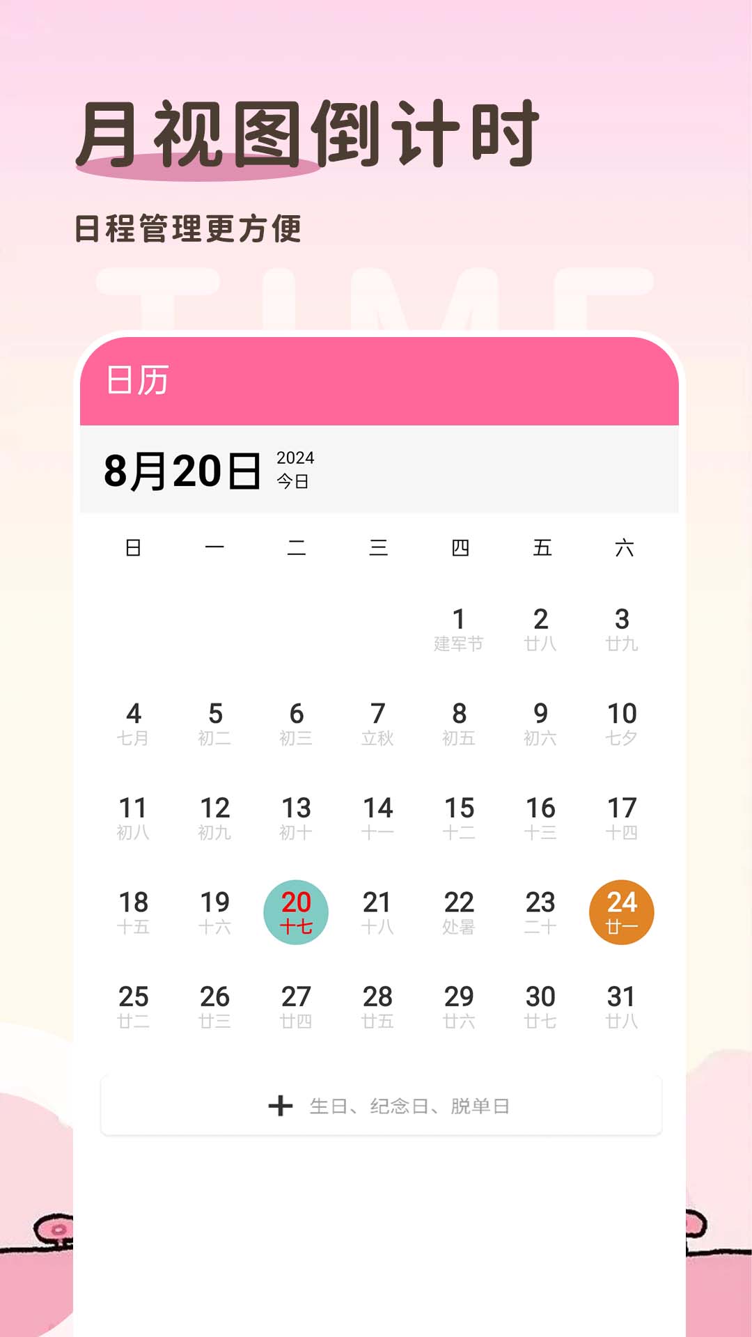 1、约会/恋爱/结婚倒数:记下这些你和ta的重要日子,提前准备礼物和惊喜吧