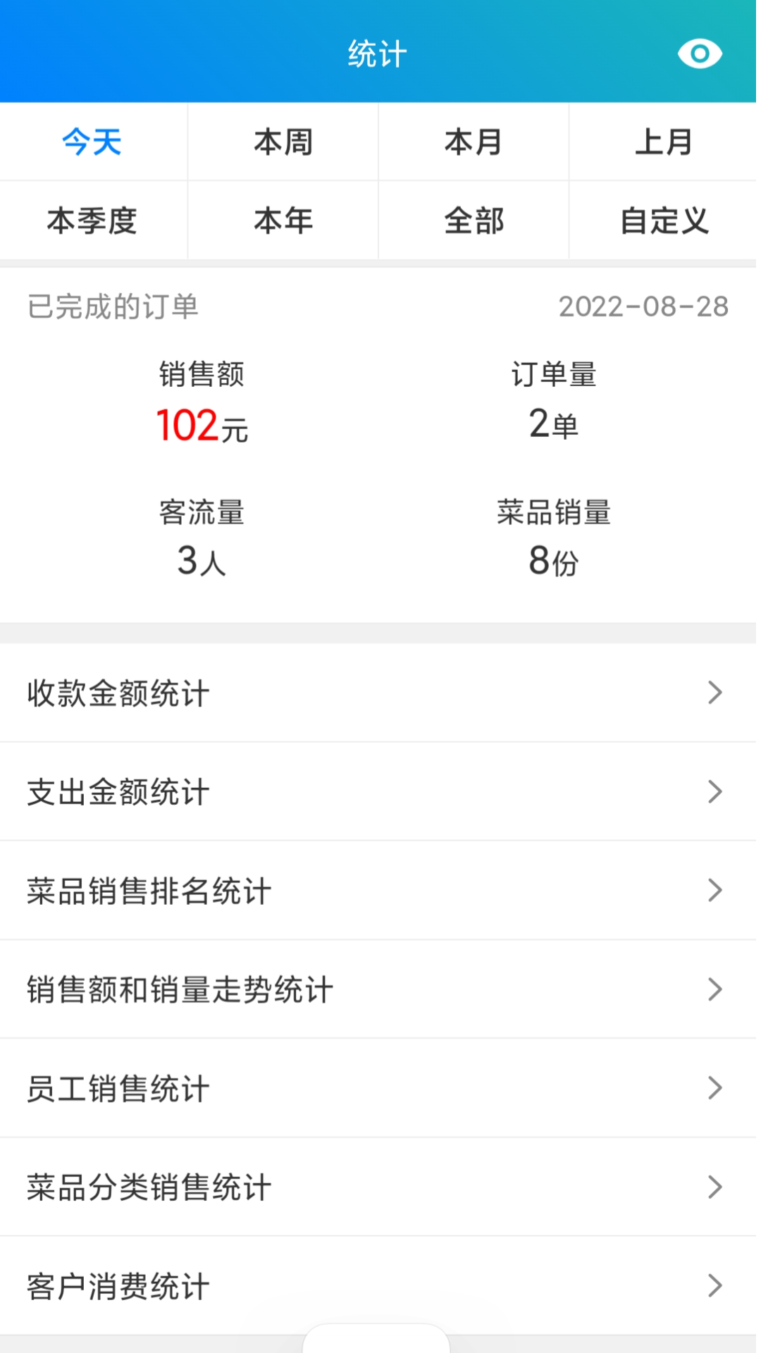并且APP可以记录日常的支出,可以准确统计菜品销售量、销售额、支出等。使店家对餐馆的销售情况和支出情况有整体的把控,方便管理餐馆。