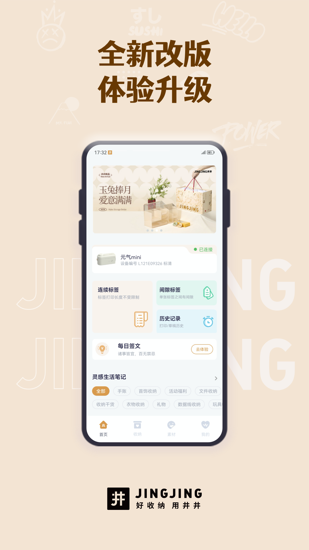 井井标记是一款多功能的应用程序。它能用于制作标签,还能查看收纳内容以及学习收纳知识。