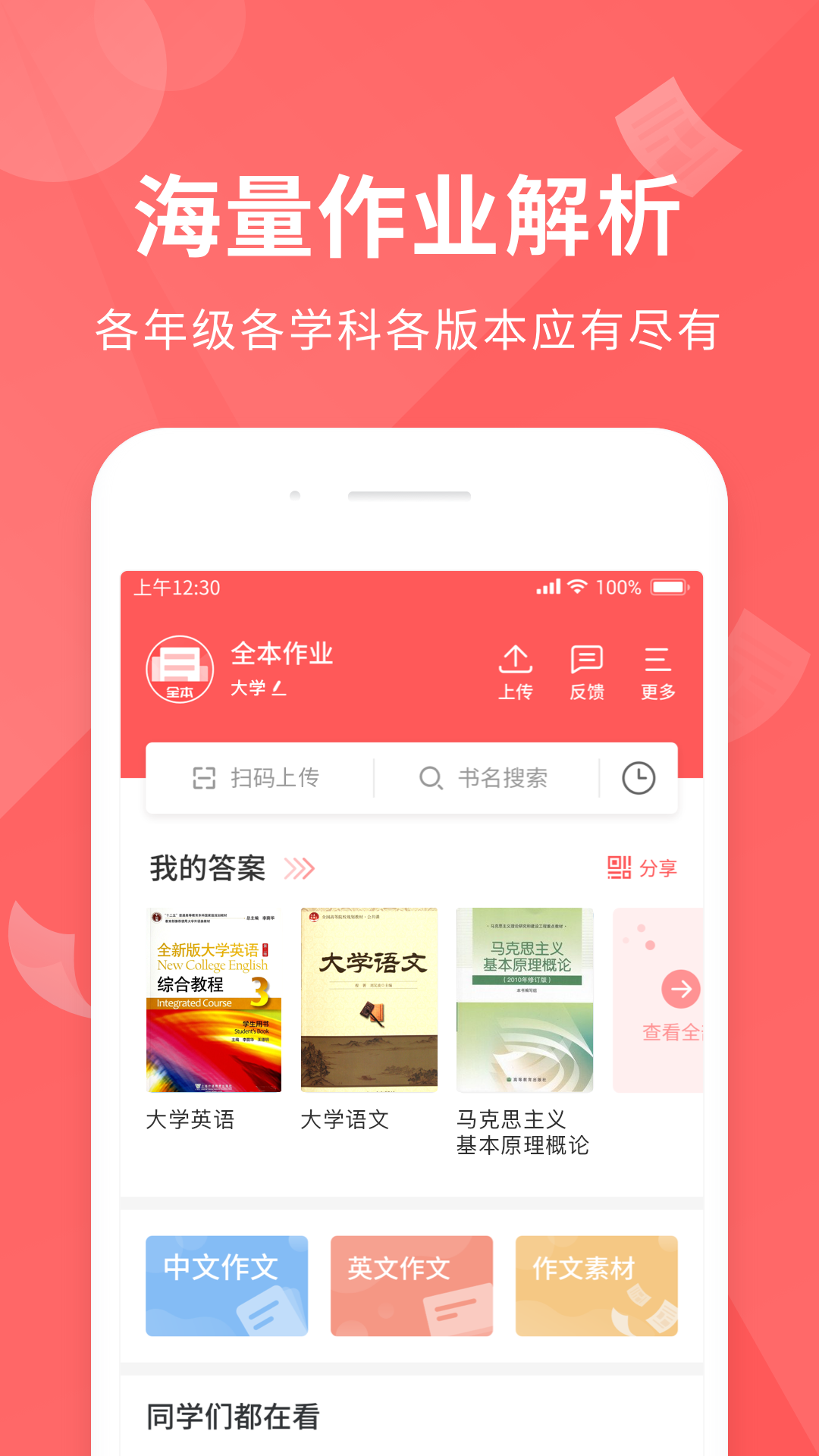 深受大学生喜爱的作业帮手,全本语文作业作文答案范文一搜即得!