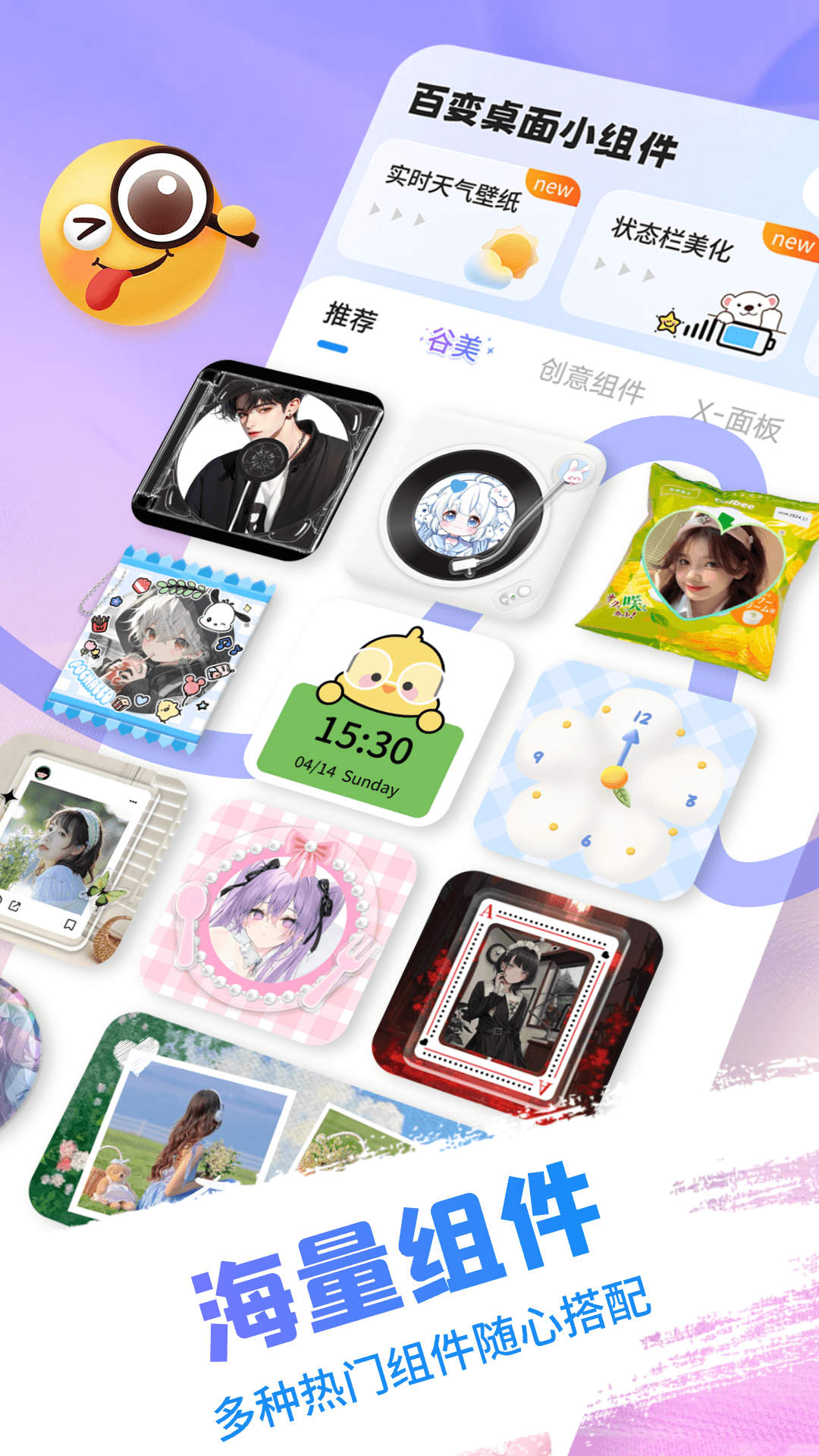 百变桌面小组件 提供各种类型的桌面小组件,主题,DIY动态壁纸,动静态微信/QQ 聊天皮肤,海量动态壁纸/静态壁纸,等你来试!