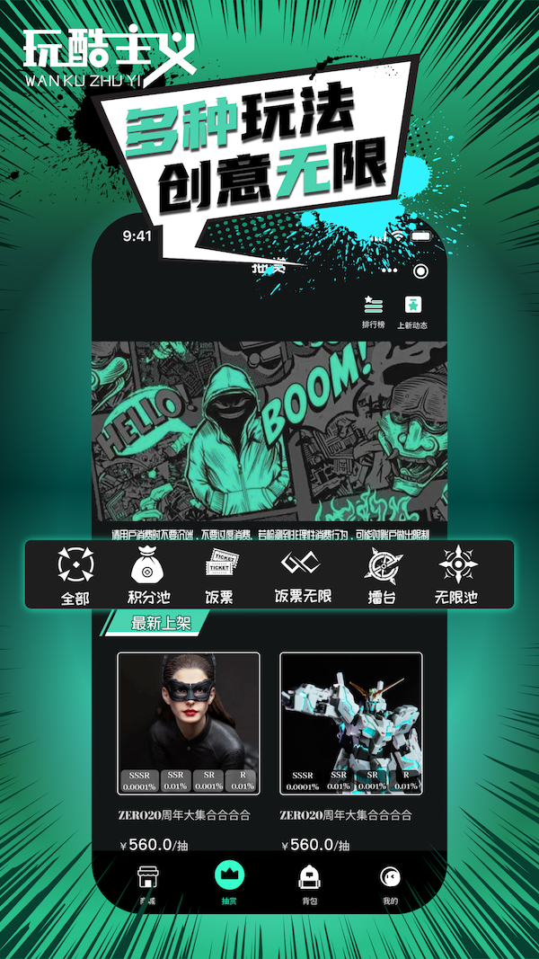 这里有九种抽赏类型,还有将近二十种模式(并且在持续更新中),我们以满满的诚意,让您尽情体验各种不同的玩法。抽赏拆盒的过程充满乐趣,快来加入吧!