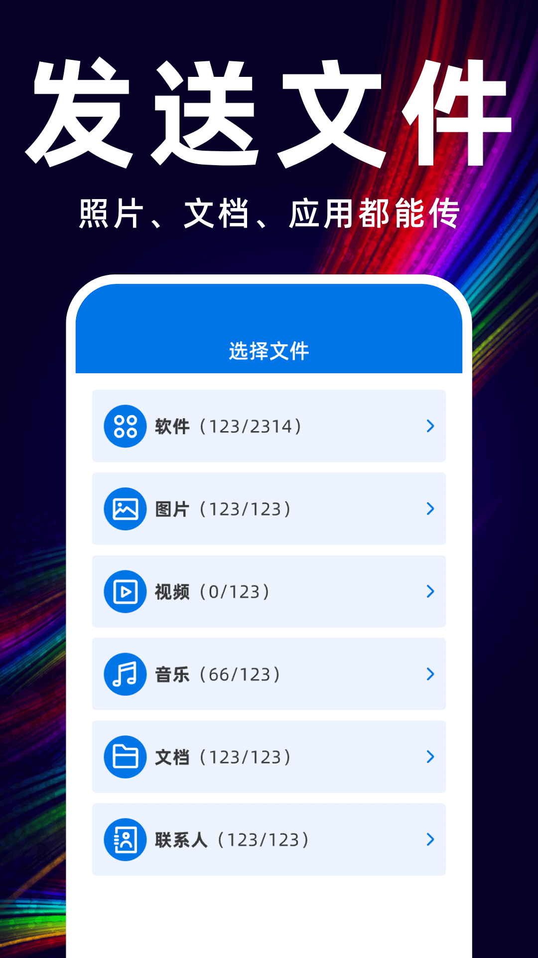 【支持各类文件,随便传】支持把旧手机的照片、联系人、文件、音乐、视频、应用等多种类型的数据和文件转移到新手机