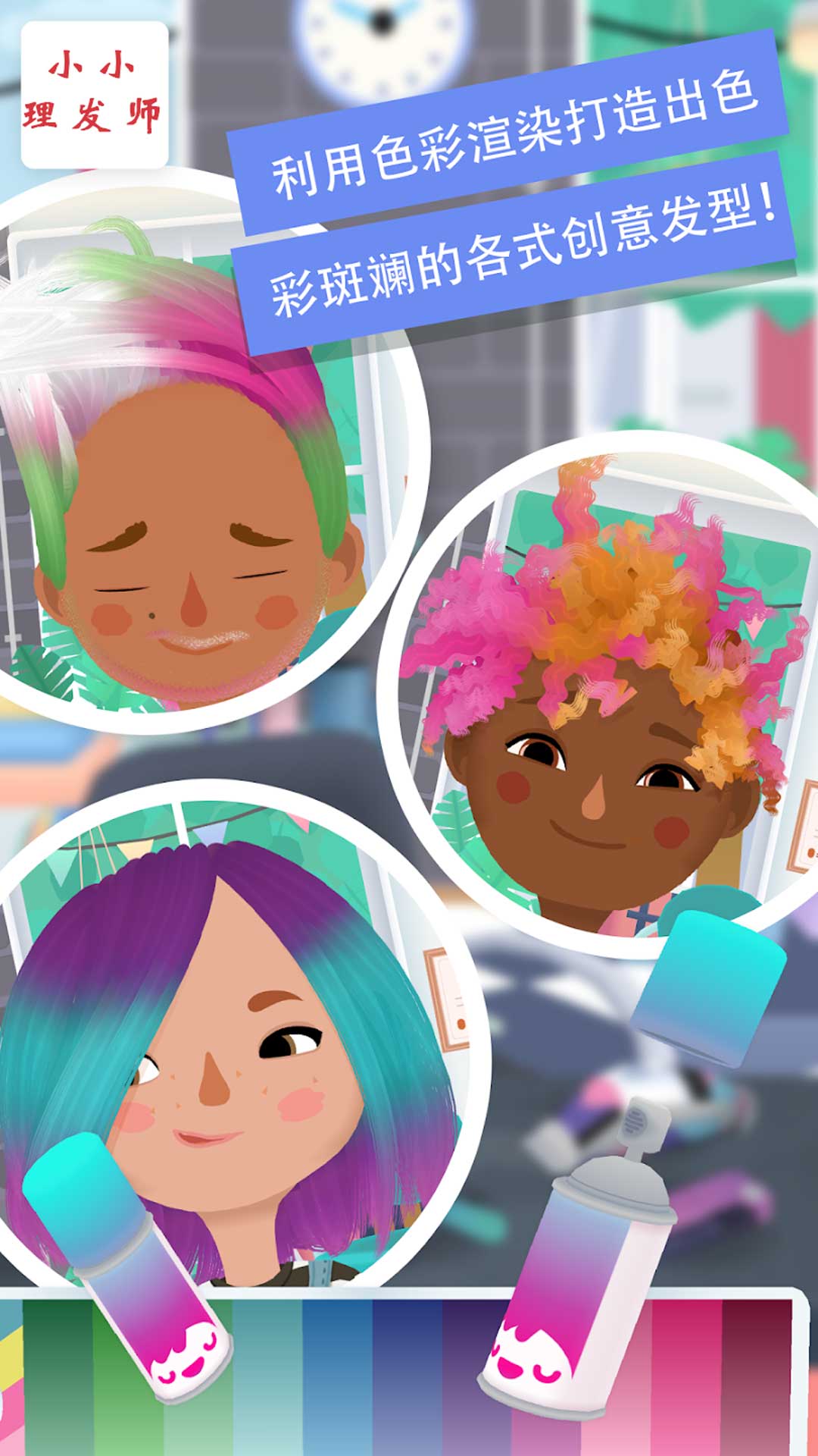 小小理发师是专为儿童设计的极具创意的应用中,你可以经营自己的发廊,有四个有趣角色可供选择。随心所欲剪、烫、染色与设计风格,采用各种各样工具——简单的梳子、剪刀以及电卷发器和头发拉直器。修理胡须、把墨霍克发型喷成亮紫色,为某人把头发卷成其心仪已久的样式。