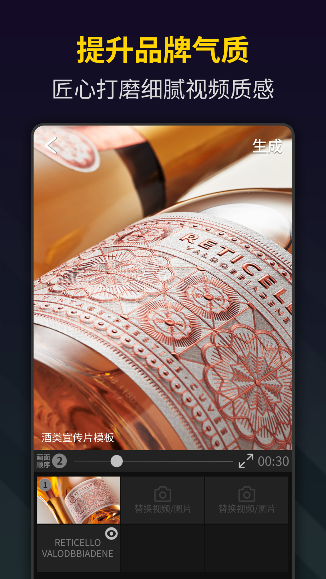 这里有丰富多样的视频模板,涵盖宣传海报制作、企业宣传片创作、广告营销策划、卡点视频相册制作以及音乐MV制作等多种类型。其视频剪辑与编辑功能十分完备,操作简单便捷,仅需轻松几步,就能快速制作出充满高级感的宣传视频。制作完成后,可一键转发至抖音、快手、朋友圈、微信群。