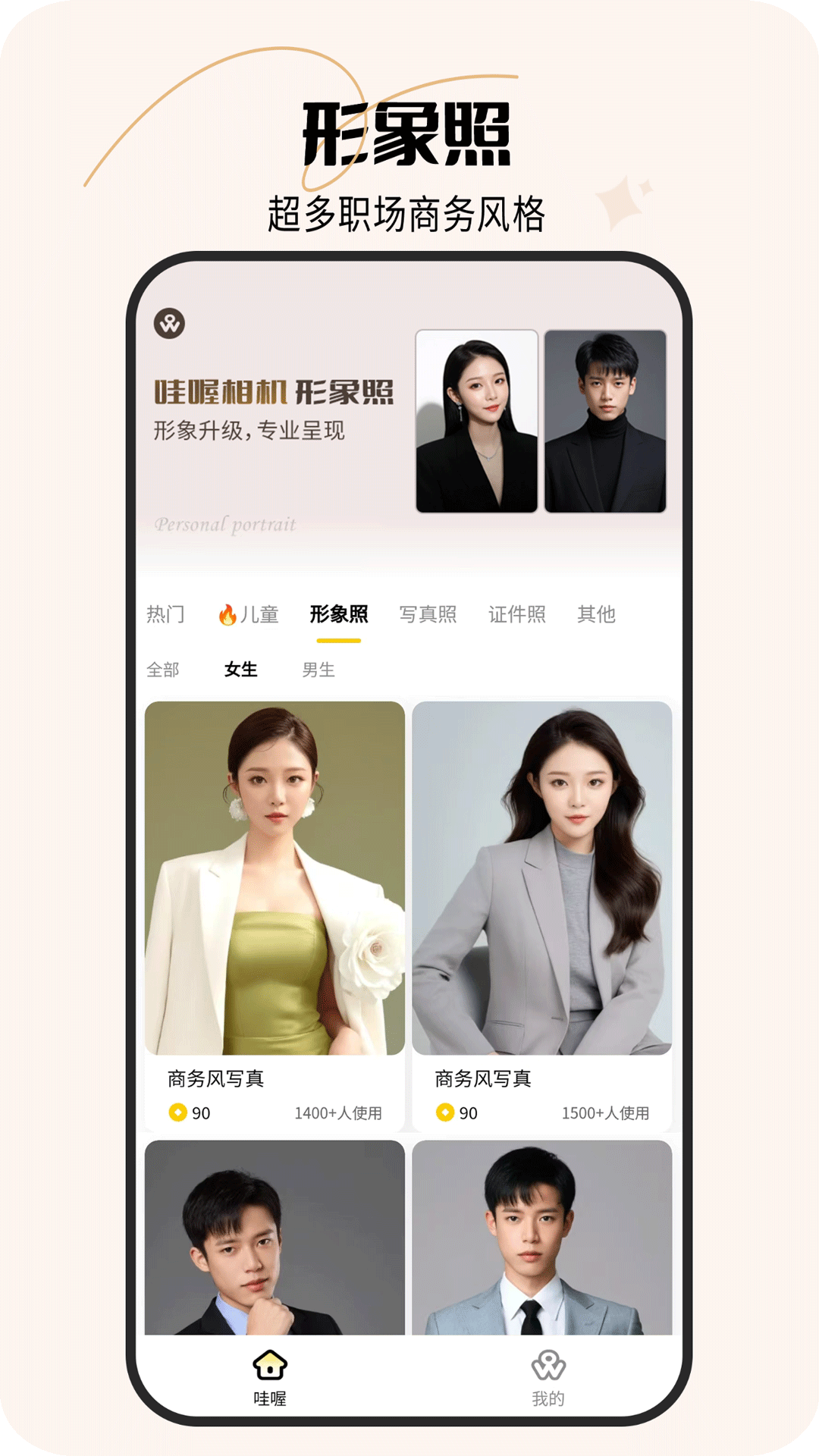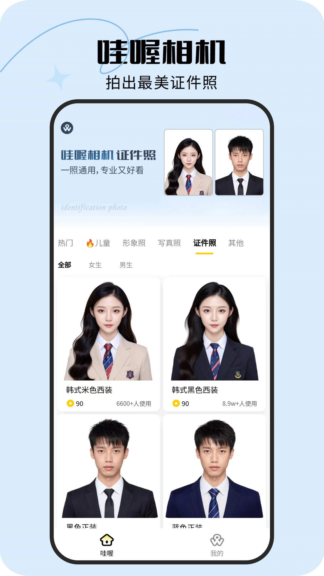 哇喔相机超神奇,仅需一张照片,短短几秒钟,就能让你拥有千变万化的写真证件照。