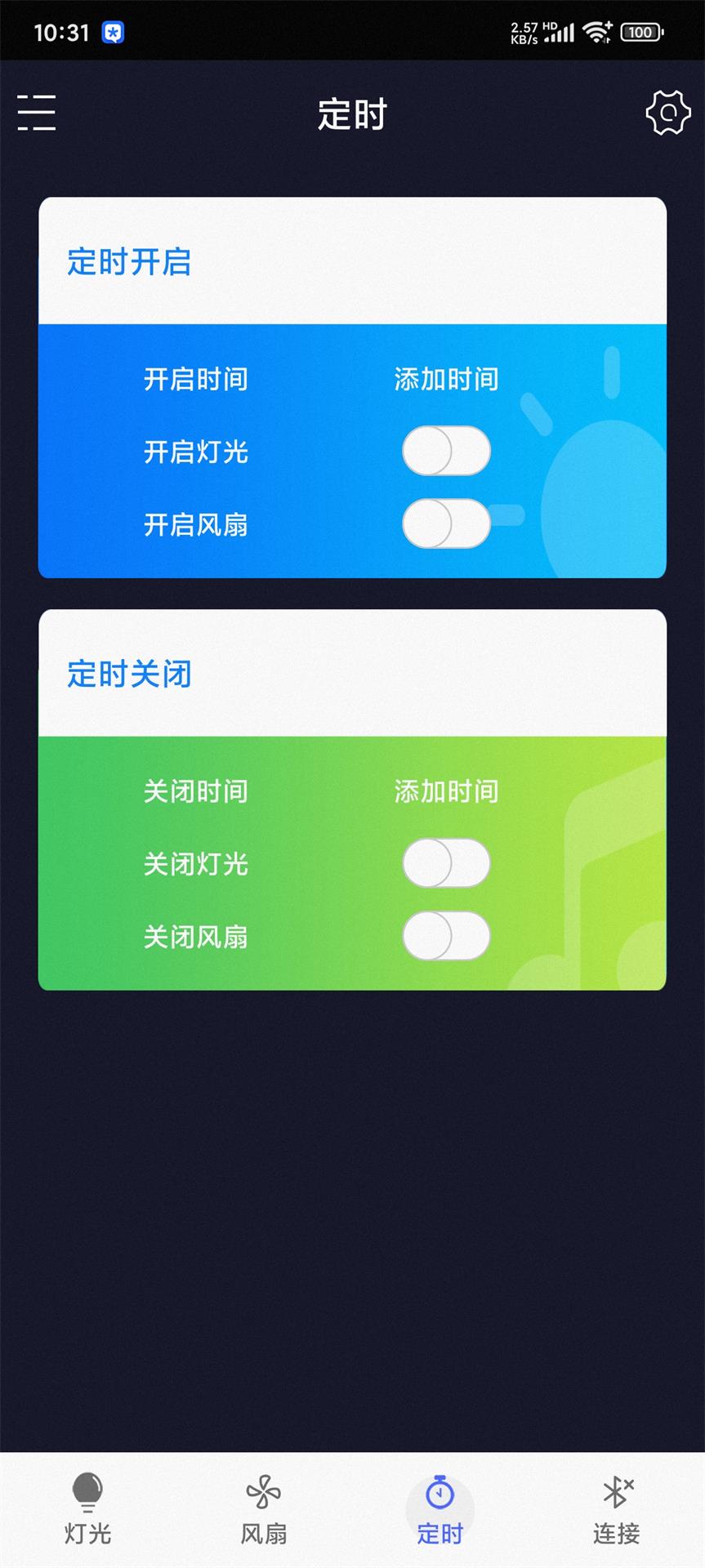 在定时方面:灯光和风扇均能实现定时开启与关闭。