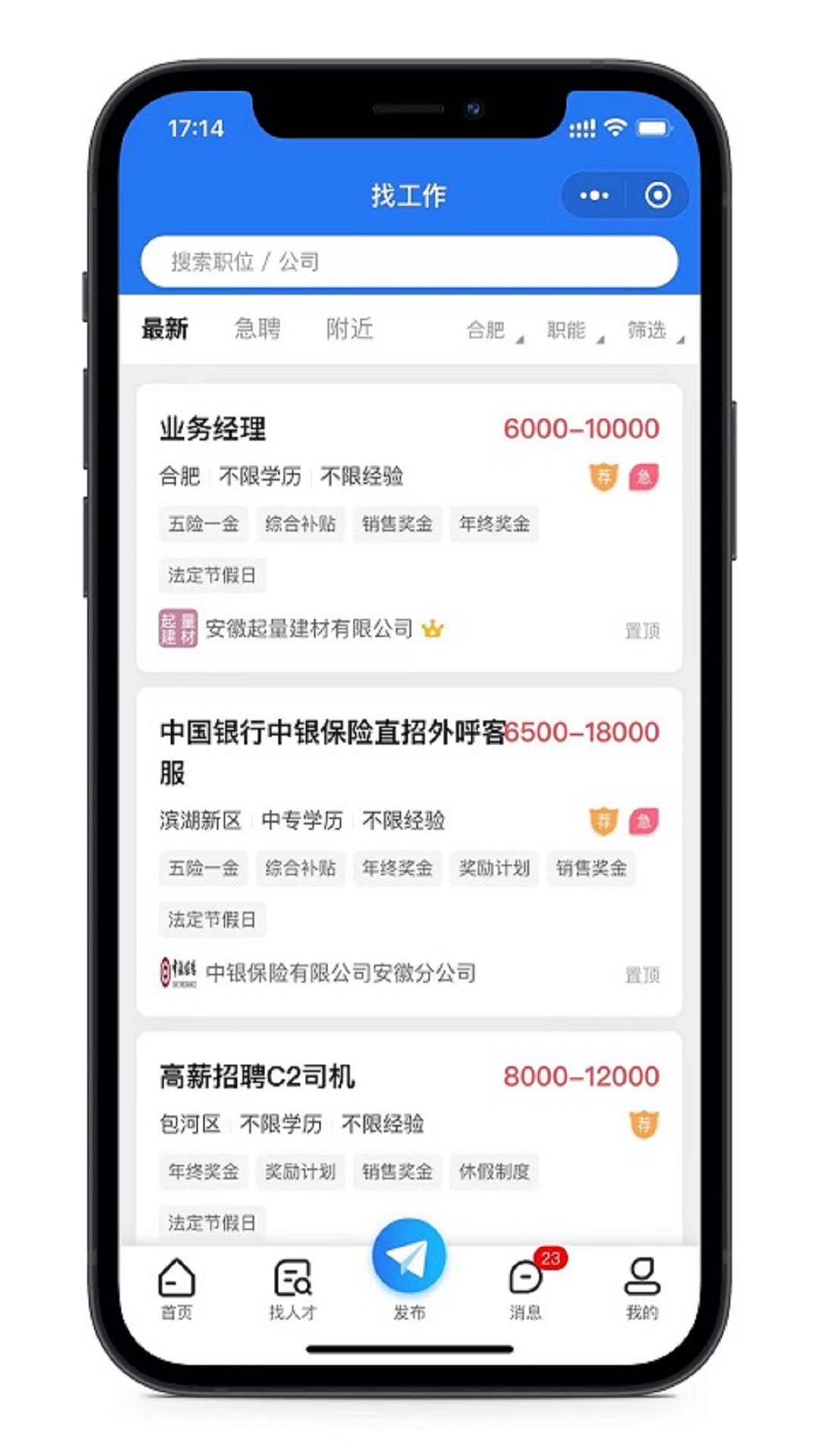 合肥招聘网(www.hfzp.cc),是企业寻找人才进行招聘、人才谋求工作岗位求职的优质平台!