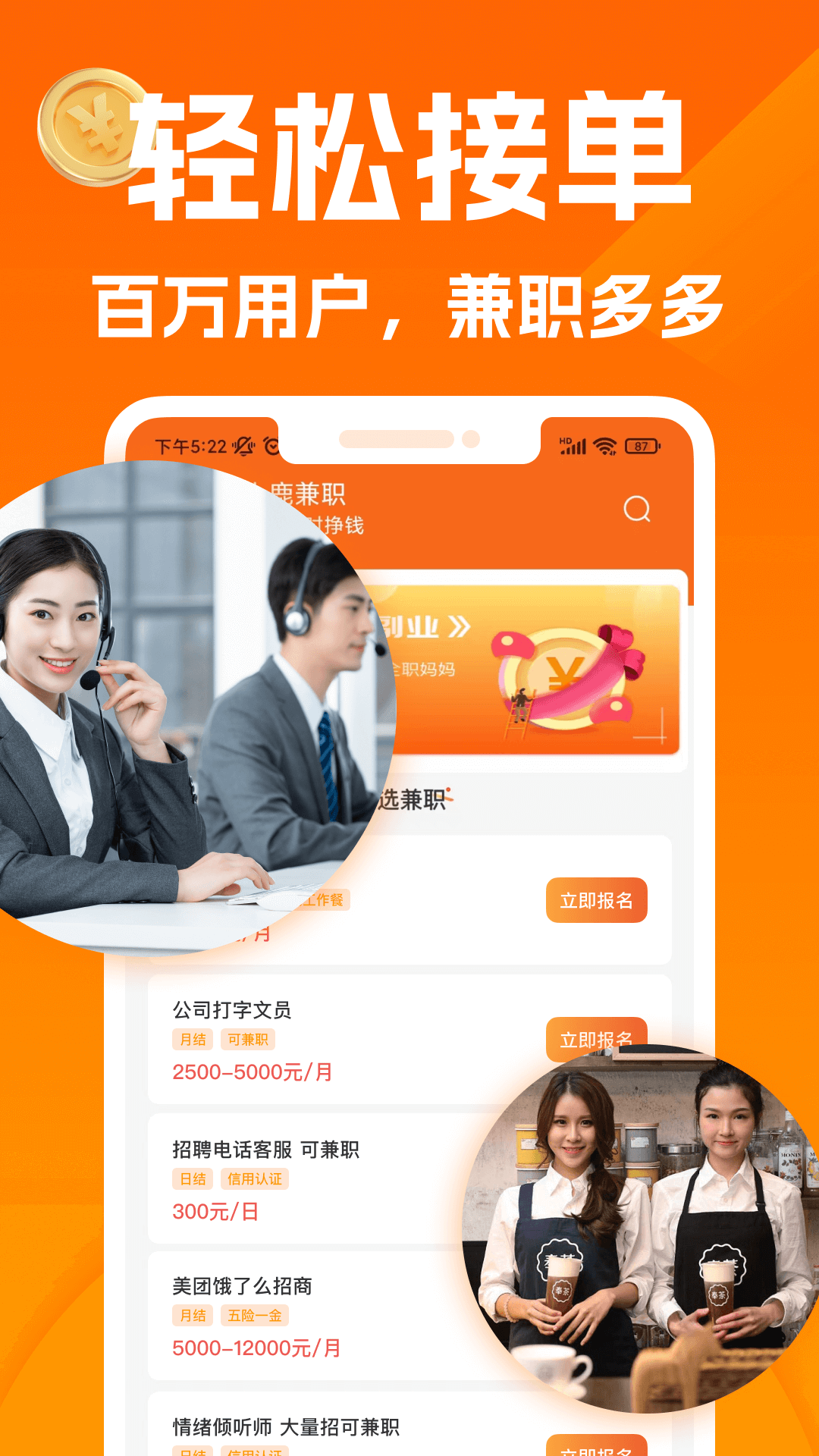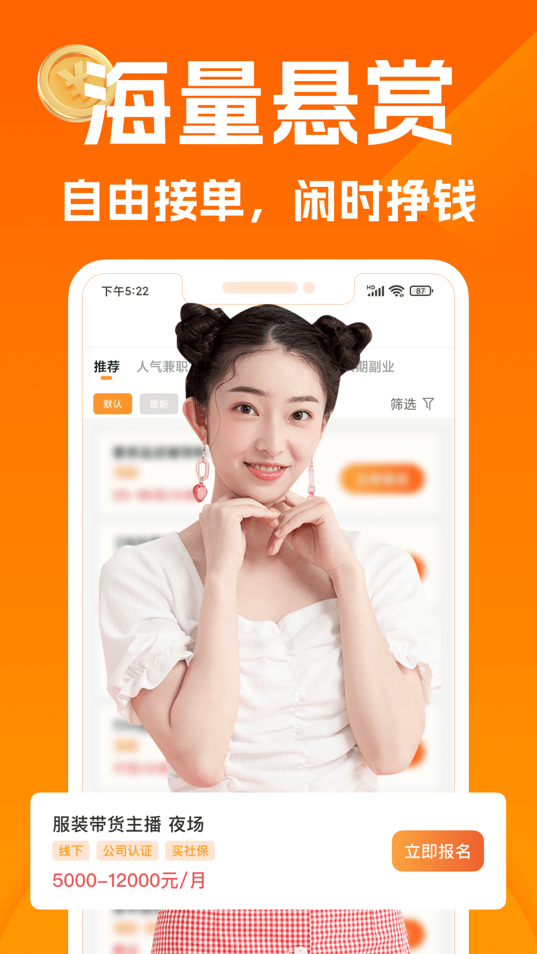 兼职挣钱:作为国内专业面向学生、自由职业者的兼职平台,也是宝妈赚取生活费的优选平台,能为您提供免费、靠谱且便捷的兼职服务。