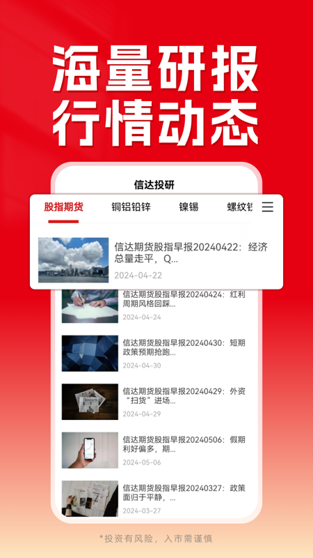 ④专业投资研报:从信达期货研究所所长、首席分析师的视角出发,凭借多维度数据结构,对大盘走向进行分析,从而帮助用户掌握行情动态。
