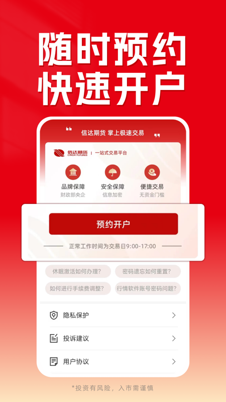 ①便捷期货开户:零资金、无门槛,轻松且快速地完成开户操作。