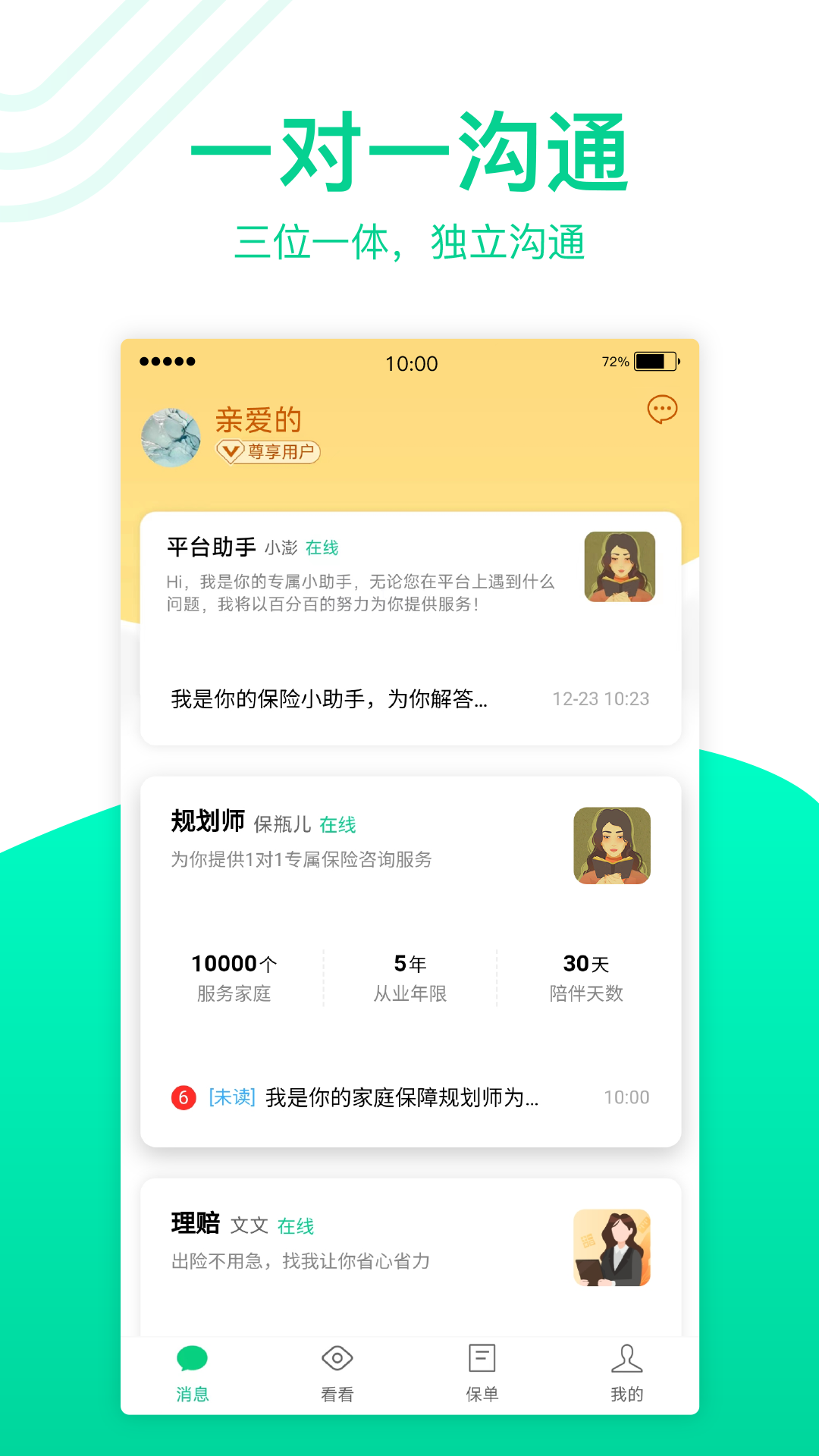 保瓶儿是一个为C端用户提供信息咨询、方案预约、保单管理、个人中心的专属服务APP,通过科技赋能消费者,让流程简化,让服务专业化。