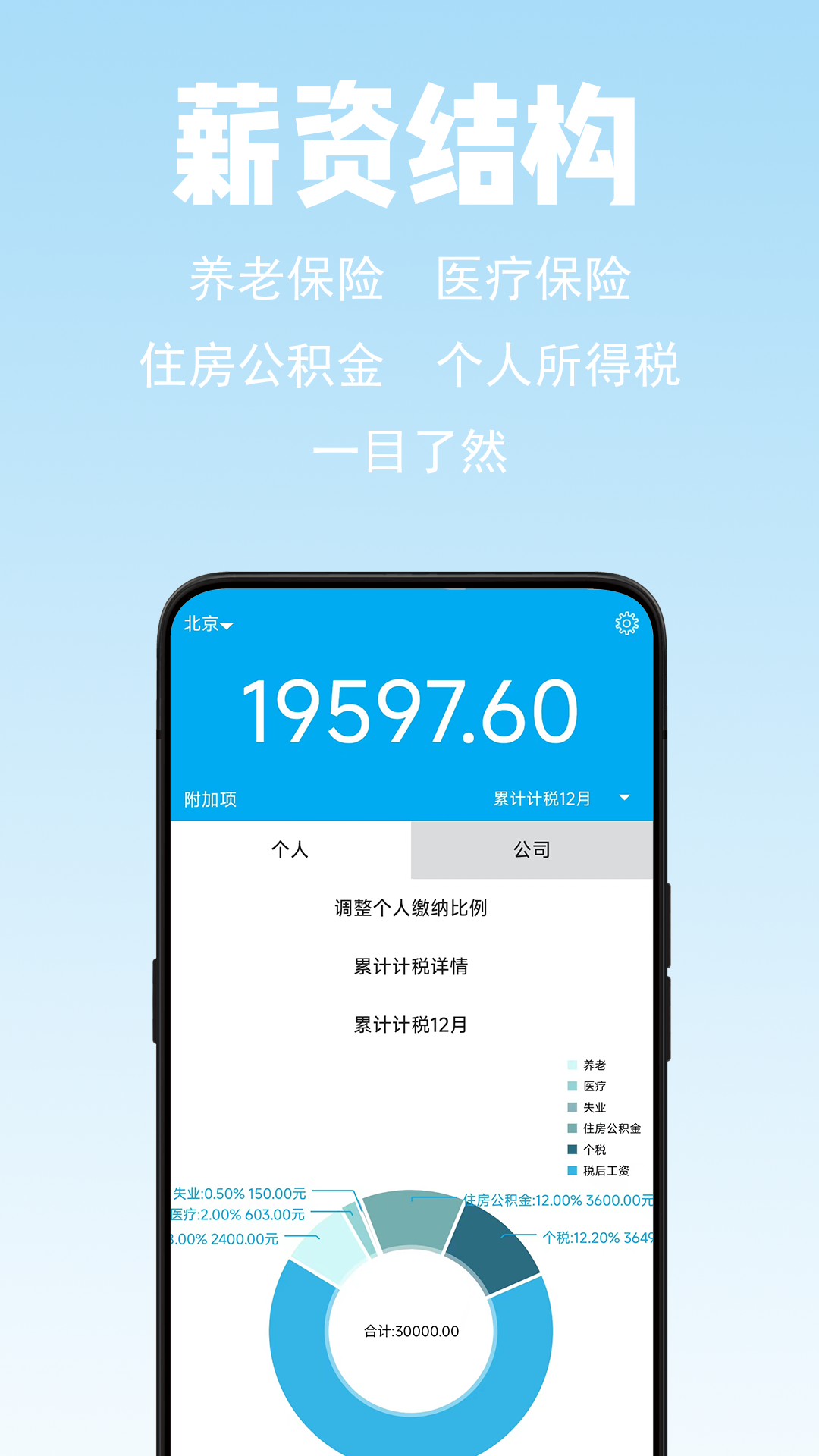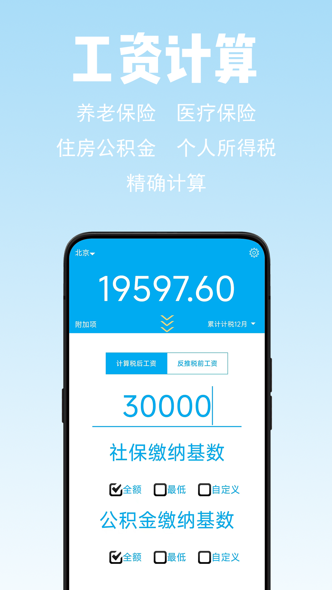 薪算是一款个税与工资计算器,旨在为用户提供准确、便捷的工资与个税计算服务。该软件具备多项实用功能,包括计算多个热门城市的五险一金缴纳比例与基数,并且支持用户自定义添加城市。此外,薪算允许用户根据个人需求自定义设置缴纳基数与比例,以满足不同城市或公司的具体要求。更值得一提的是,薪算支持累计计税法,用户可以轻松计算指定月份的工资与个税,并可将计算结果导出到Excel报表中,方便数据整理与分析。
