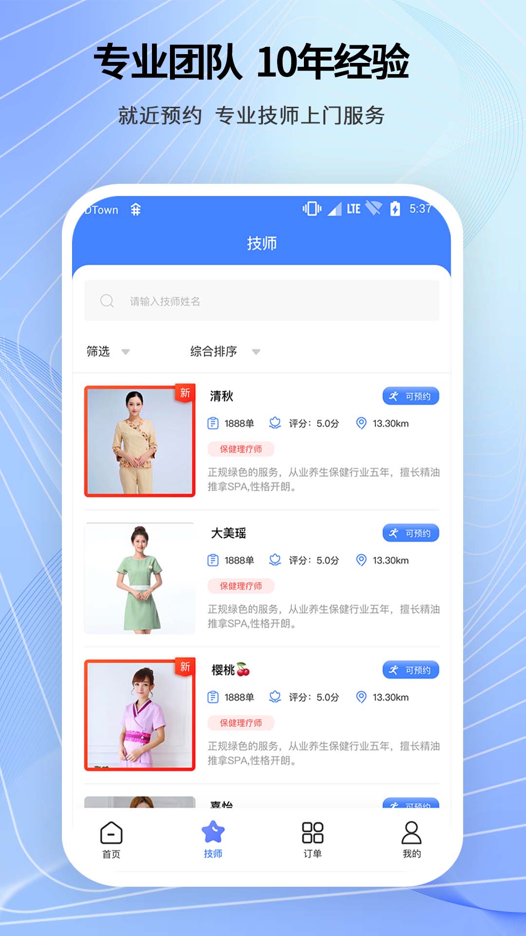 2. 附近技师:您能清晰地看到附近技师所提供的服务项目,轻松预约技师上门按摩。